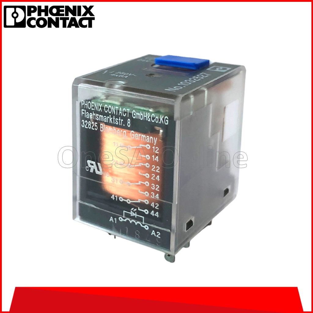 PHOENIX CONTACT RELAY C/W BASE AND TEST BUTTON 14PINS 6AMP DC24V FLAT PIN(1032527 + 2908214)