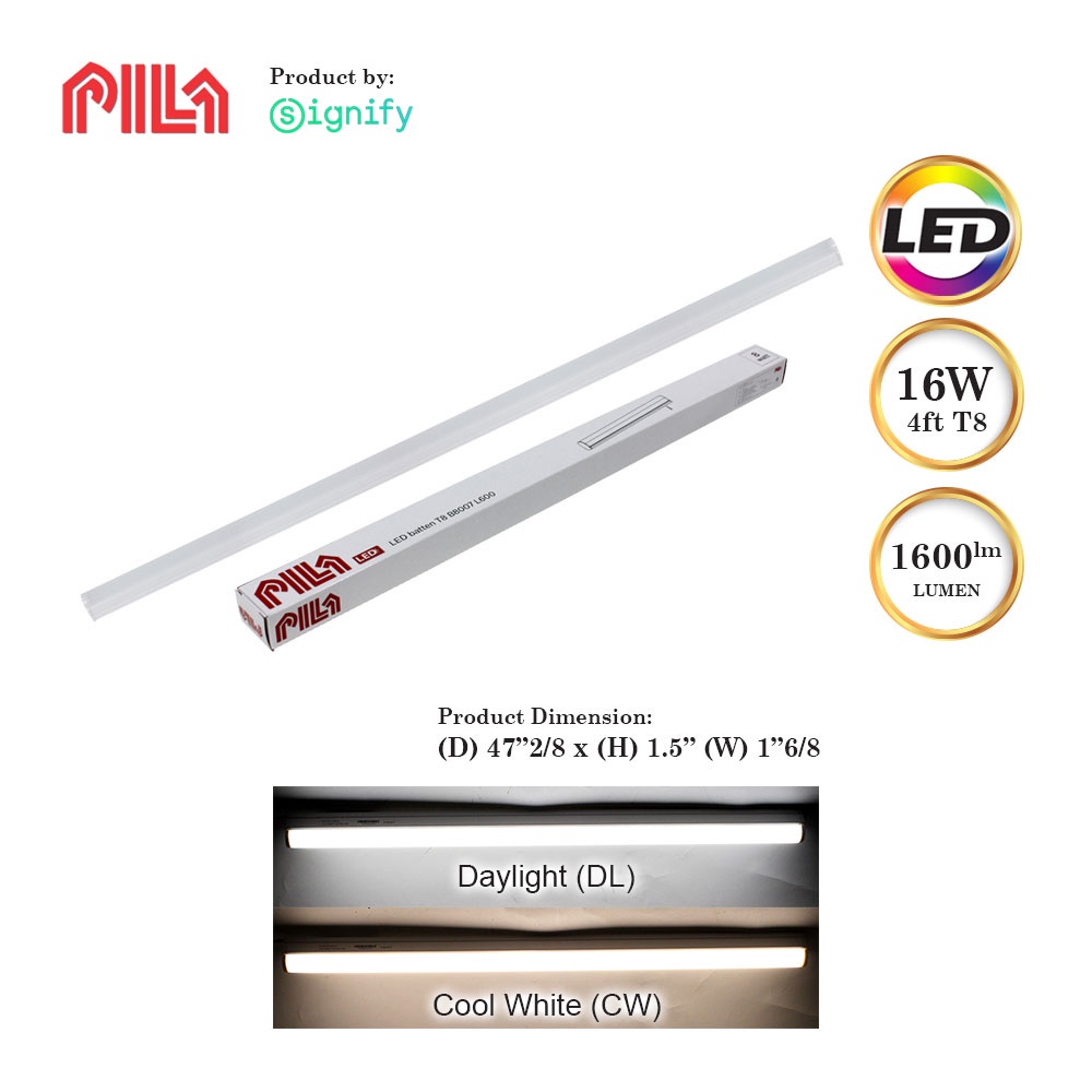 PILA B8007 [8W/16W] [2FT/4FT] LED T8 BATTEN COMPLETE SET