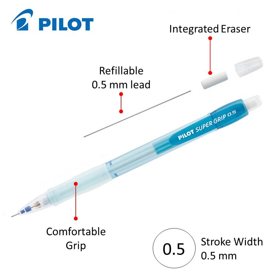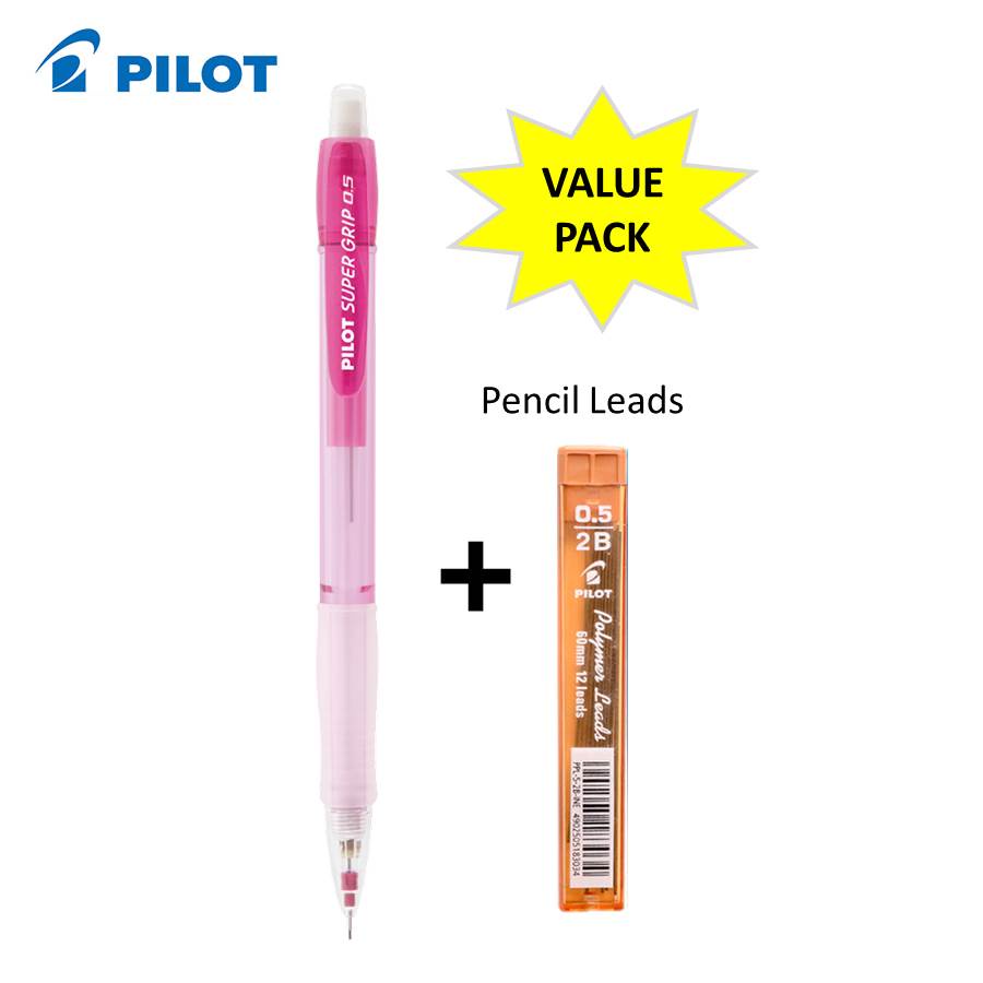 PILOT Mechanical Pencil Super Grip Neon 0.5mm - Value Pack Mechanical Pencil with Leads 0.5mm | Pensil Tekan 0.5mm