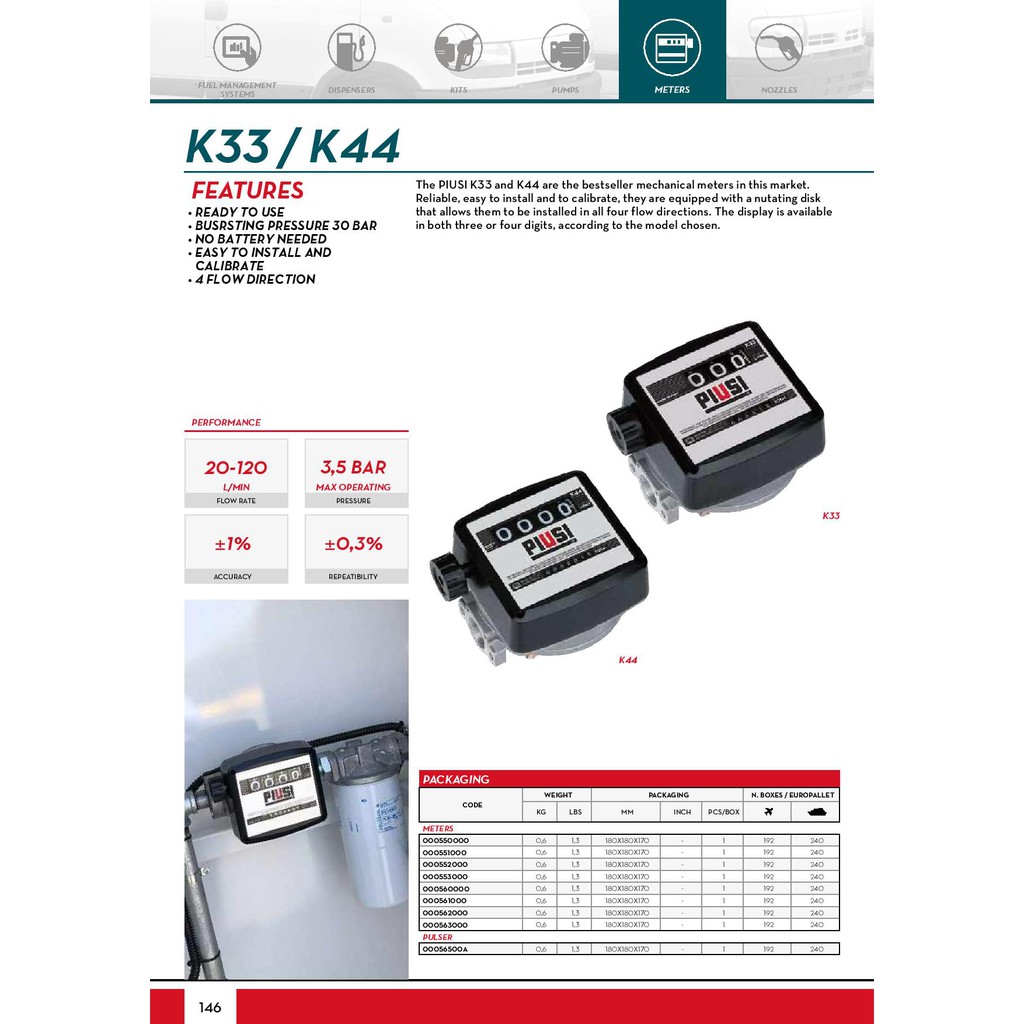 PIUSI K33 3 Digits 1" Mechanical Diesel Meter