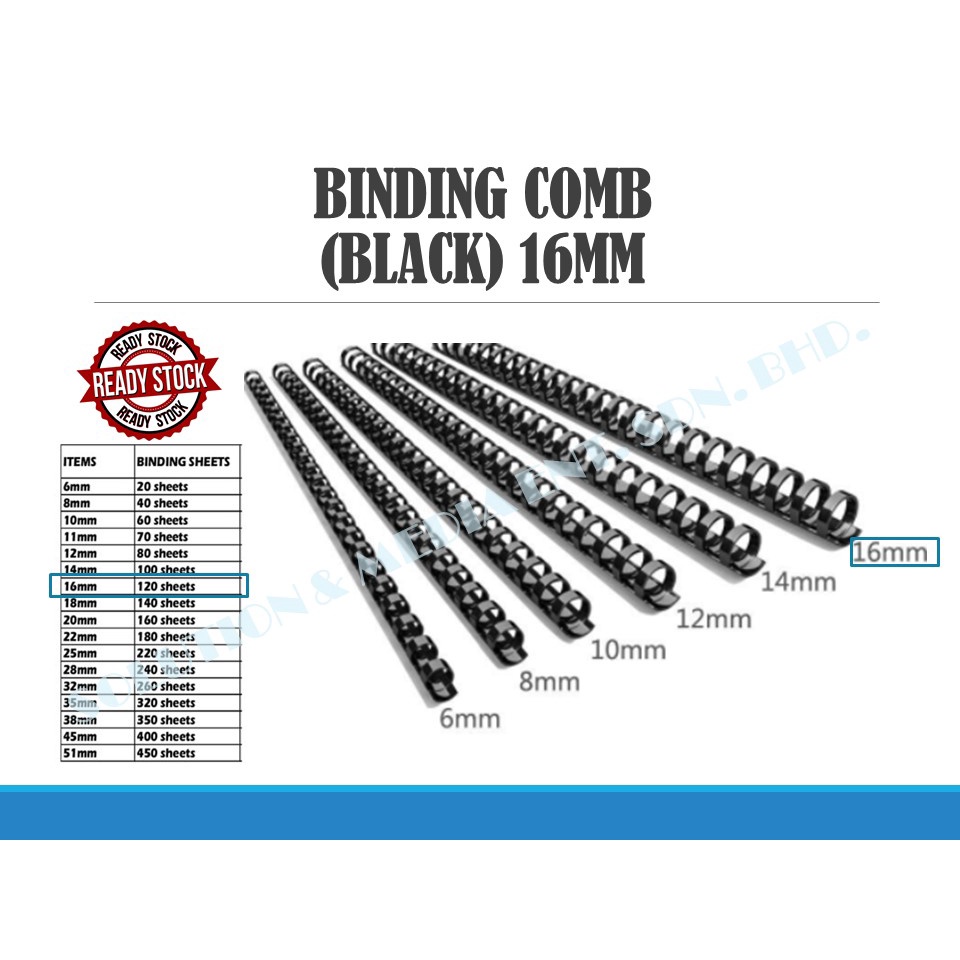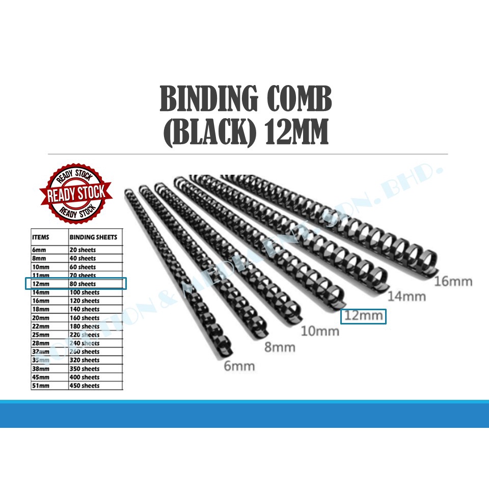 PLASTIC BINDING COMB / COMB BINDER RINGS / SPIRAL COMB BLACK