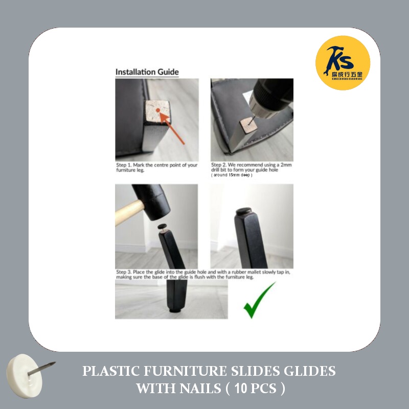 Plastic Furniture Slides Glides With Nails ( 10 PCS )