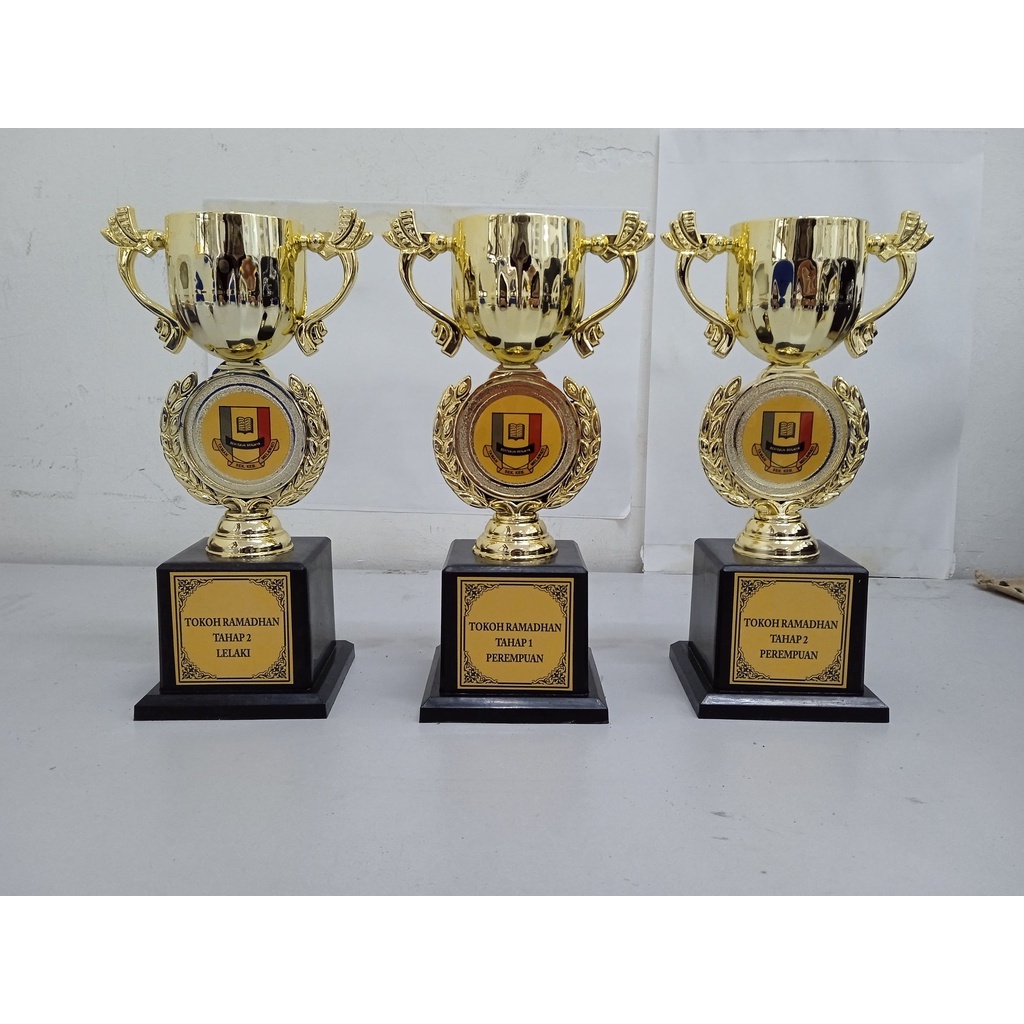 PLASTIC TROPHY / ANUGERAH CEMERLANG + LABEL + LOGO ( HADIAH SUKAN DAN HADIAH ANUGERAH CEMERLANG )