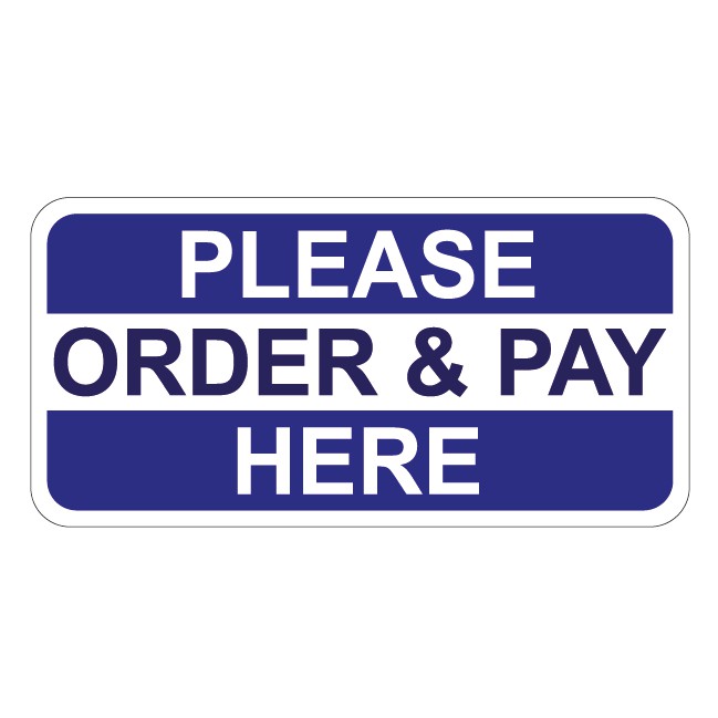 PLEASE PAY HERE, PLEASE ORDER HERE, PLEASE ORDER AND PAY HERE, PICK UP HERE PVC SIGN STICKER 105X210MM. WE ACCEPT CUST