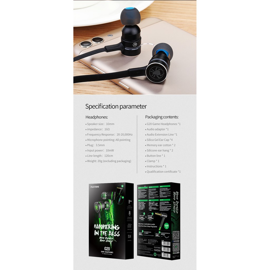 PLEXTONE G20 Mark III In-Ear Gaming Earphones Stereo Bass Magnetic Wired Gaming Headset For PC Laptop Smartphones
