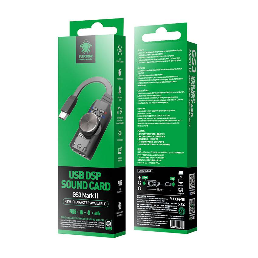 PLEXTONE GS3 MARK II VIRTUAL 7.1CH USB SOUND CARD EXTERMAL AUDIO CARD 3.5 MM USB ADAPTER GAMING PC Laptop