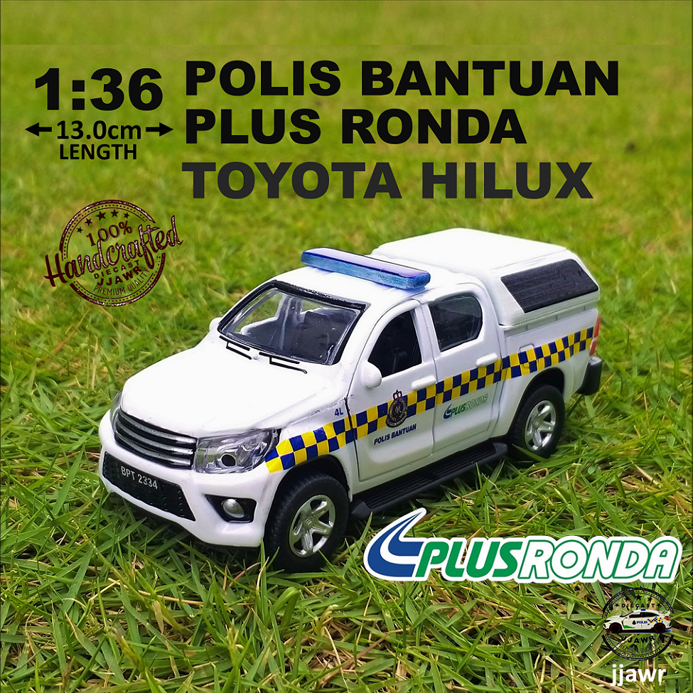 PLUS RONDA HILUX: 1:36 PLUS Ronda Polis Bantuan Highway Patrol Pickup Model Diecast Toy