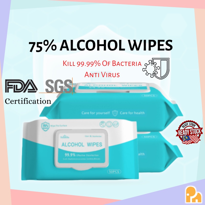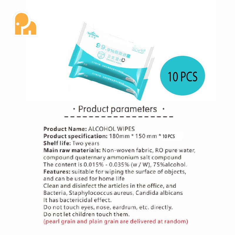 PN.10PCS/50PCS Disinfection Wipes Sterilization 75% Alcohol Wet Tissue Skin Toys Cleaning Tisu Alcohol wipes dettol
