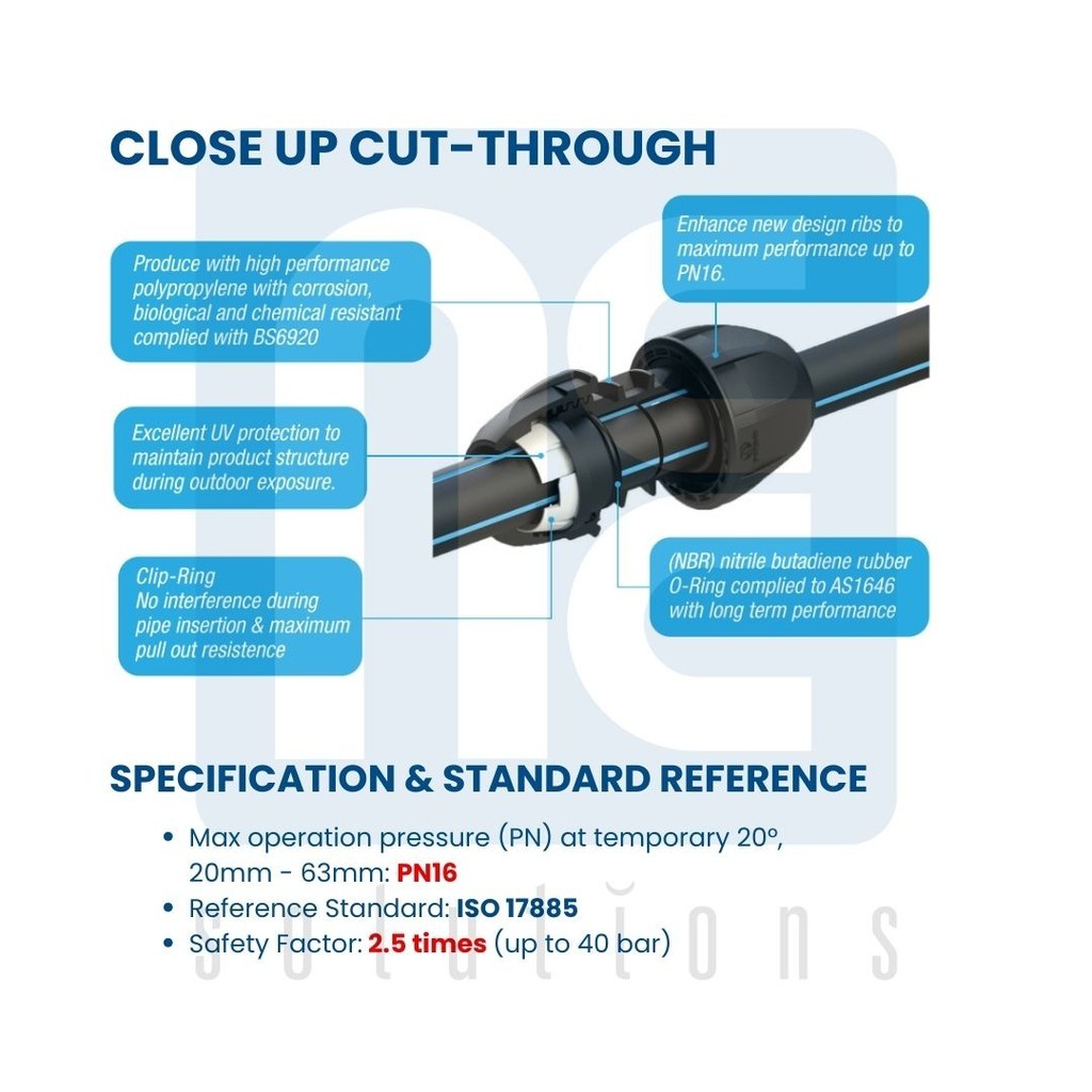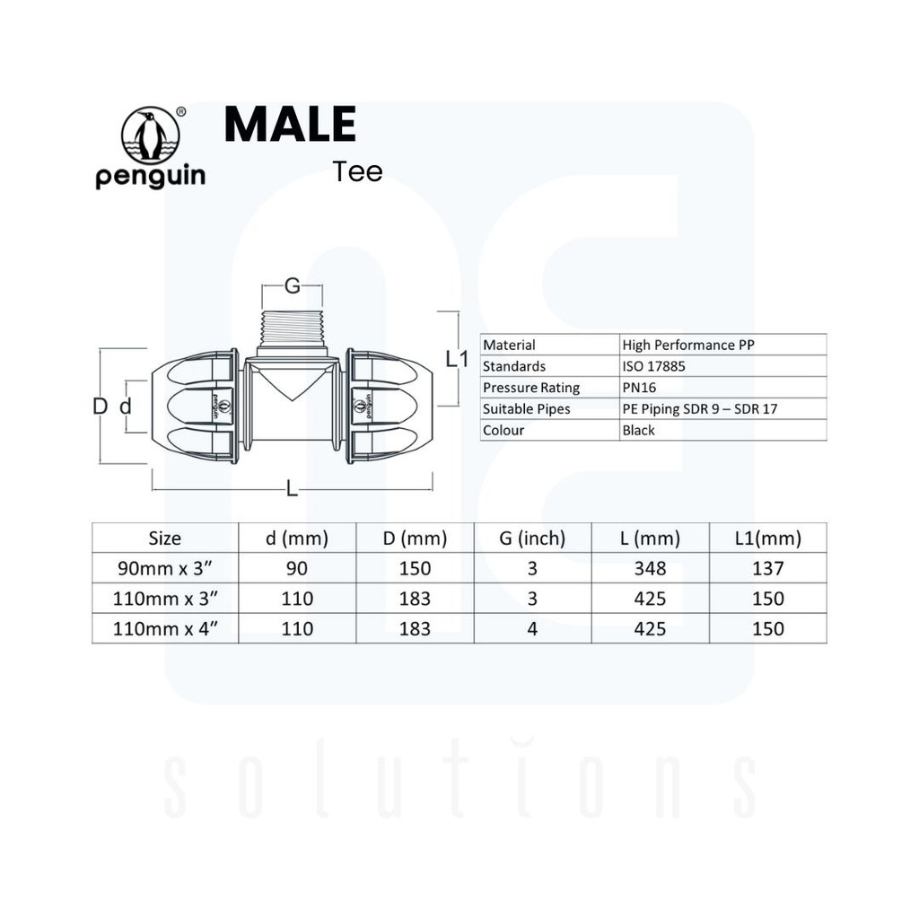 PN16 HDPE Compression Poly Pipe Connector Poly Pipe Fitting Poly Fitting Pipe Fitting SIRIM Male Tee 90mm 110mm