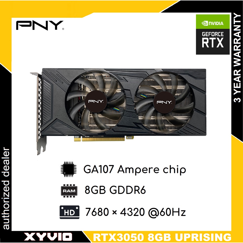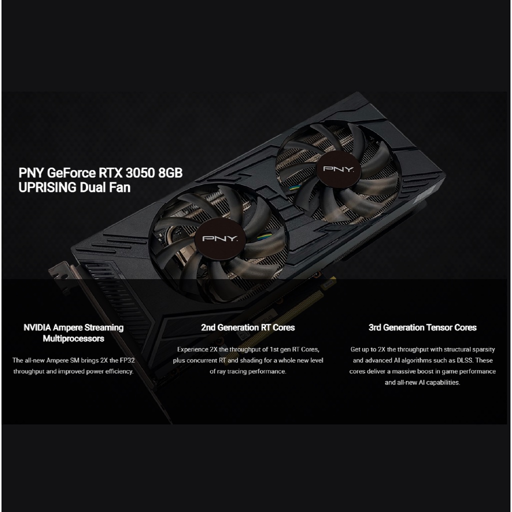 PNY UPRISING GEFORCE RTX3050 8GB DDR6 128BIT DUAL FAN EDITION VGA GRAPHICS CARD