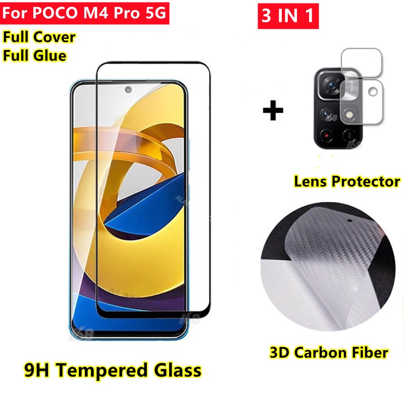 POCO F3 Screen Protector POCO M3 M4 Pro 5G X3 GT Matte Tempered Glass POCO X3 NFC Redmi Note 10 9T 9 Pro 5G 9S 8 Pro Full Cover Camera Lens Protector Carbon Fiber Back Film Full Glue