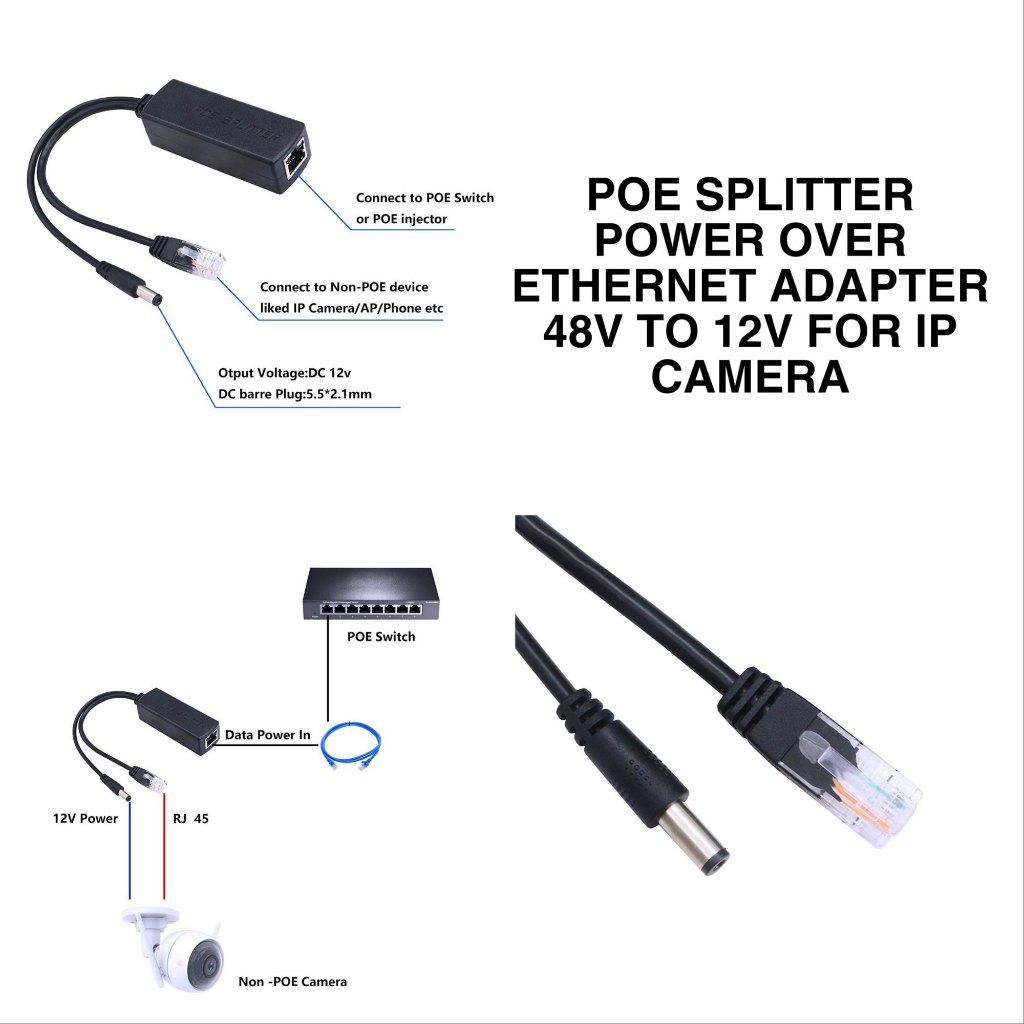 POE Splitter For CCTV IP Phone 48V to 12V DC 2A & RJ45 PoE Splitter