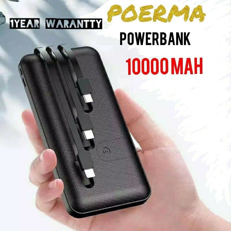 POERMA PB190 POWER BANK 10000 MAH 3 CABLE BUILT IN (Lighting,micro&type C)