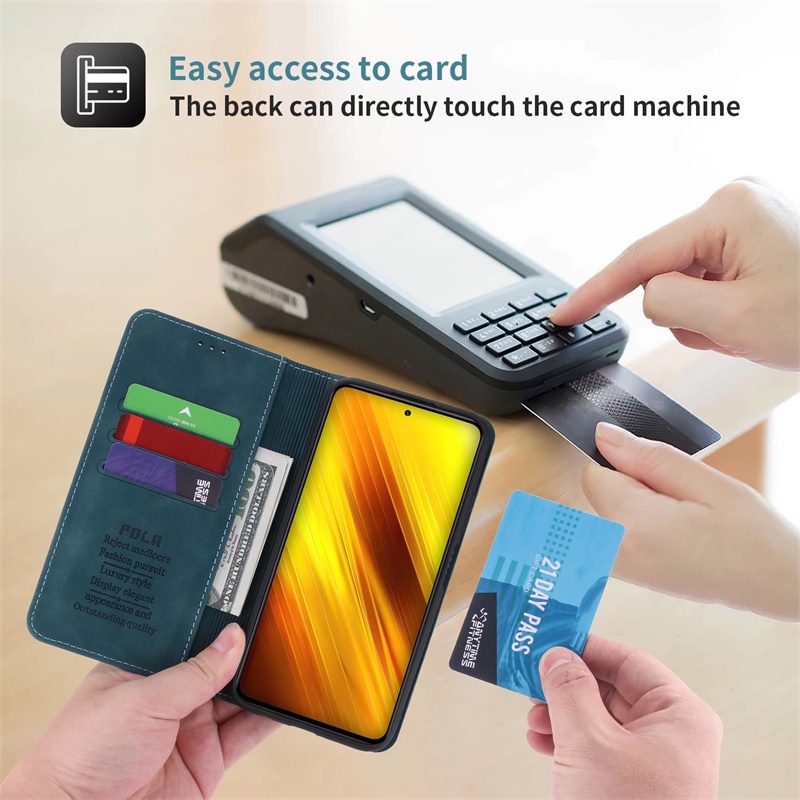 POLA Luxury Flip Phone Case Xiaomi POCO X3 NFC X3Pro X4 Pro 5G X3 GT M4 Pro M3Pro M3 F3 Card Slots Magnetic Stand Wallet Leather Cover Casing
