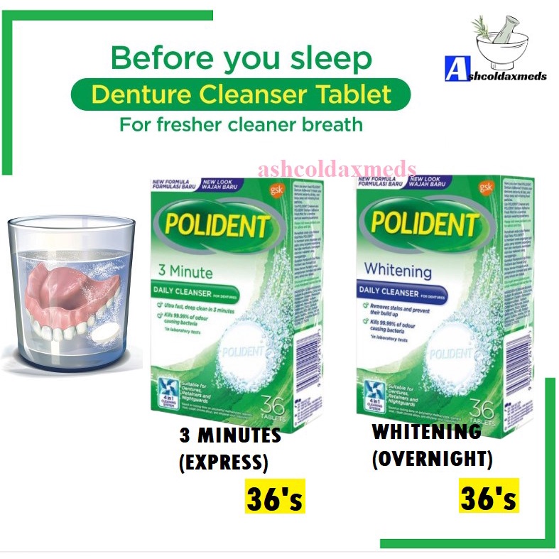 POLIDENT 3 MINUTE /Overnight WHITENING DAILY CLEANSER /Pro Retainer & Guard Daily Cleanser 36's