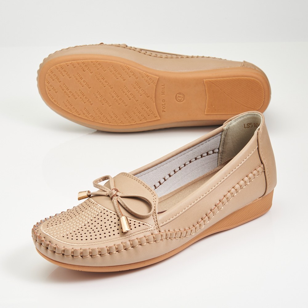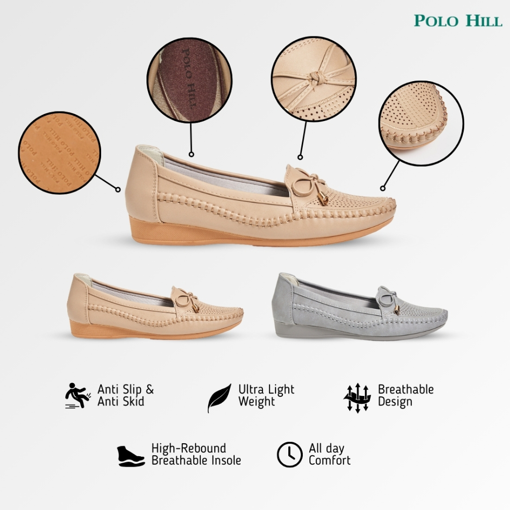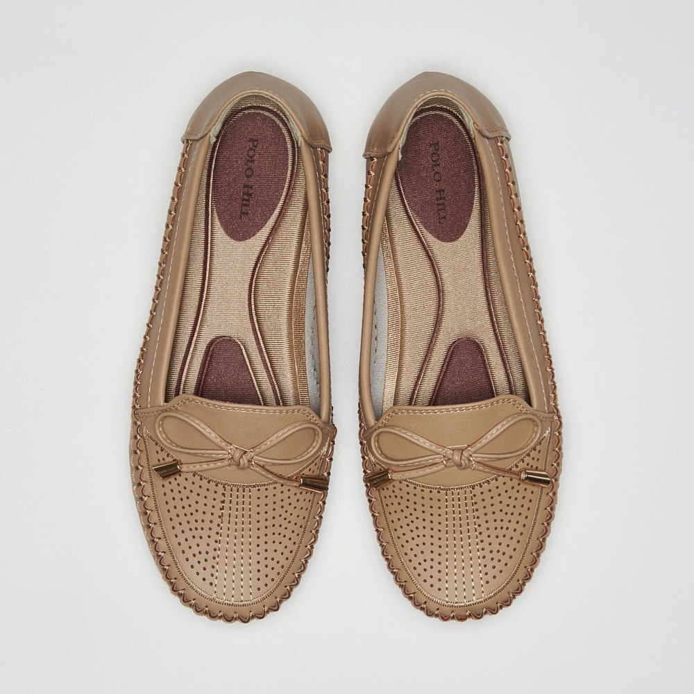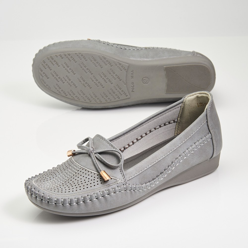 POLO HILL Ladies Bow Tie Slip On Loafers Shoes PLSL-LS5106 (Brown/Grey)