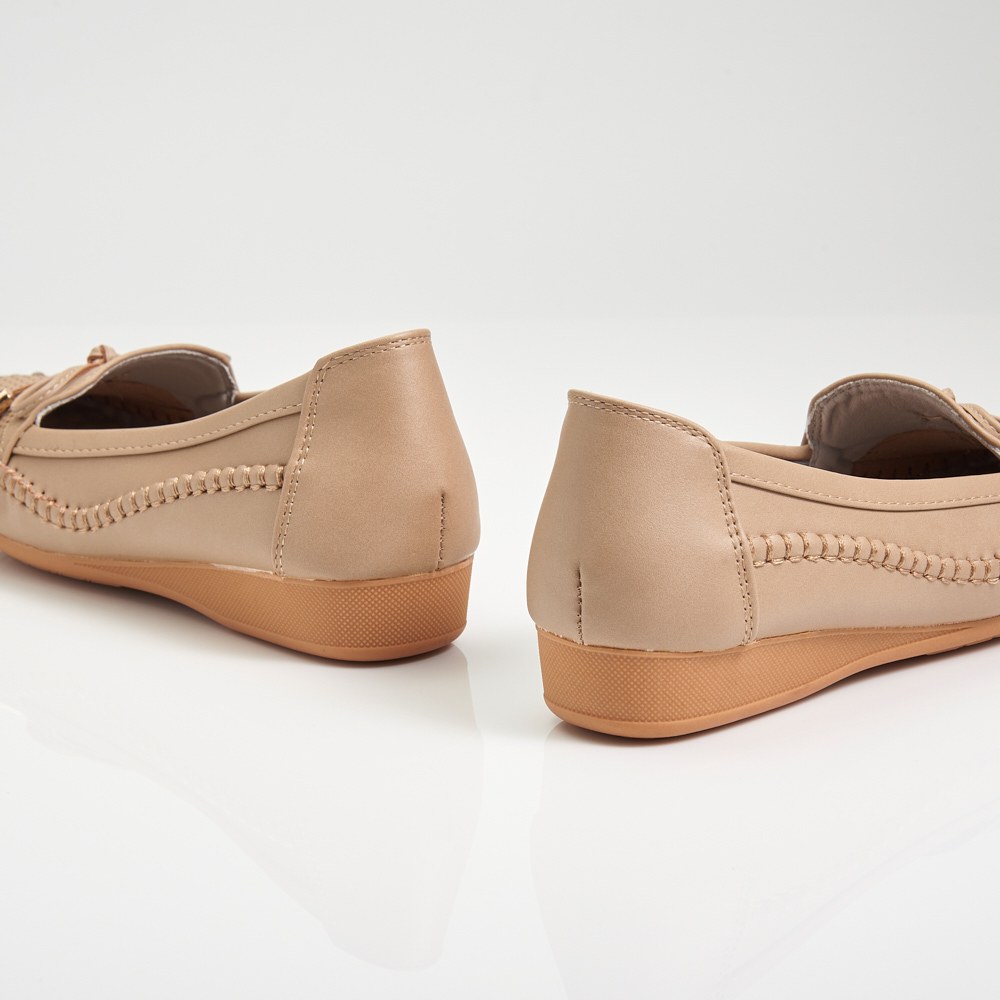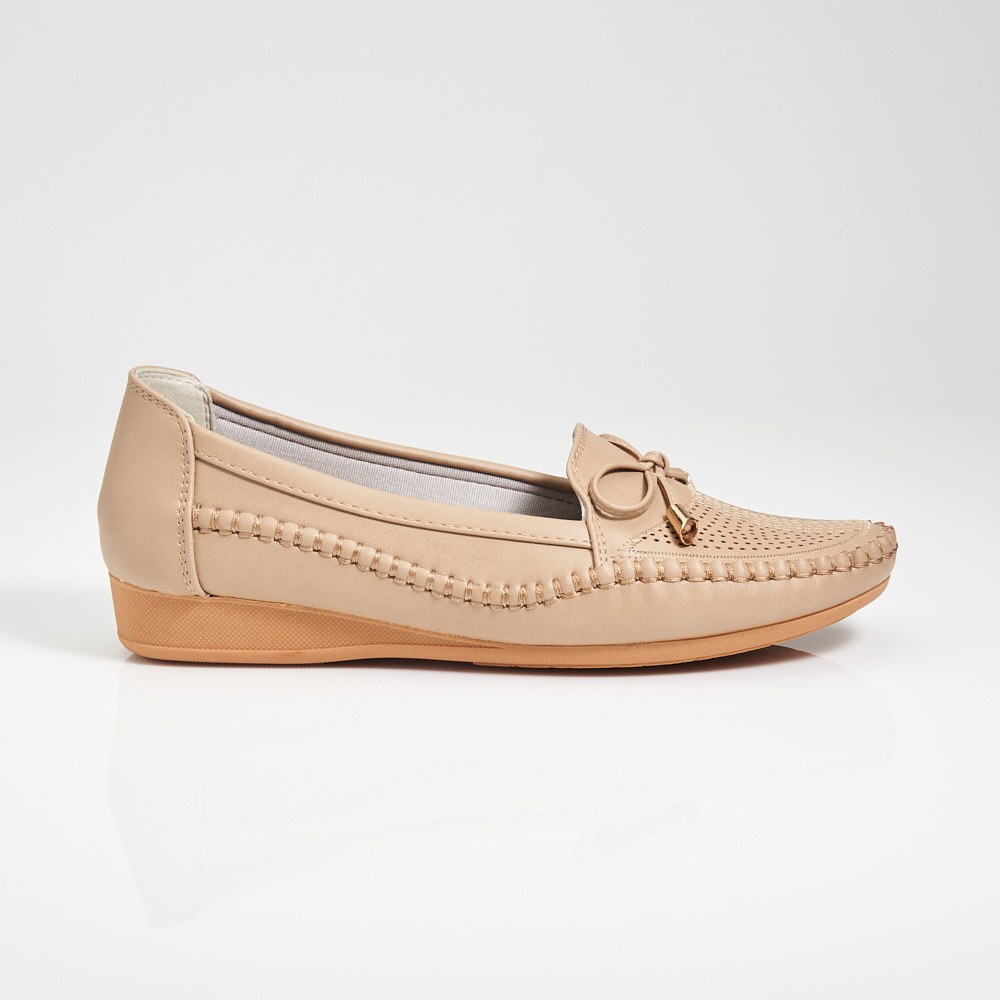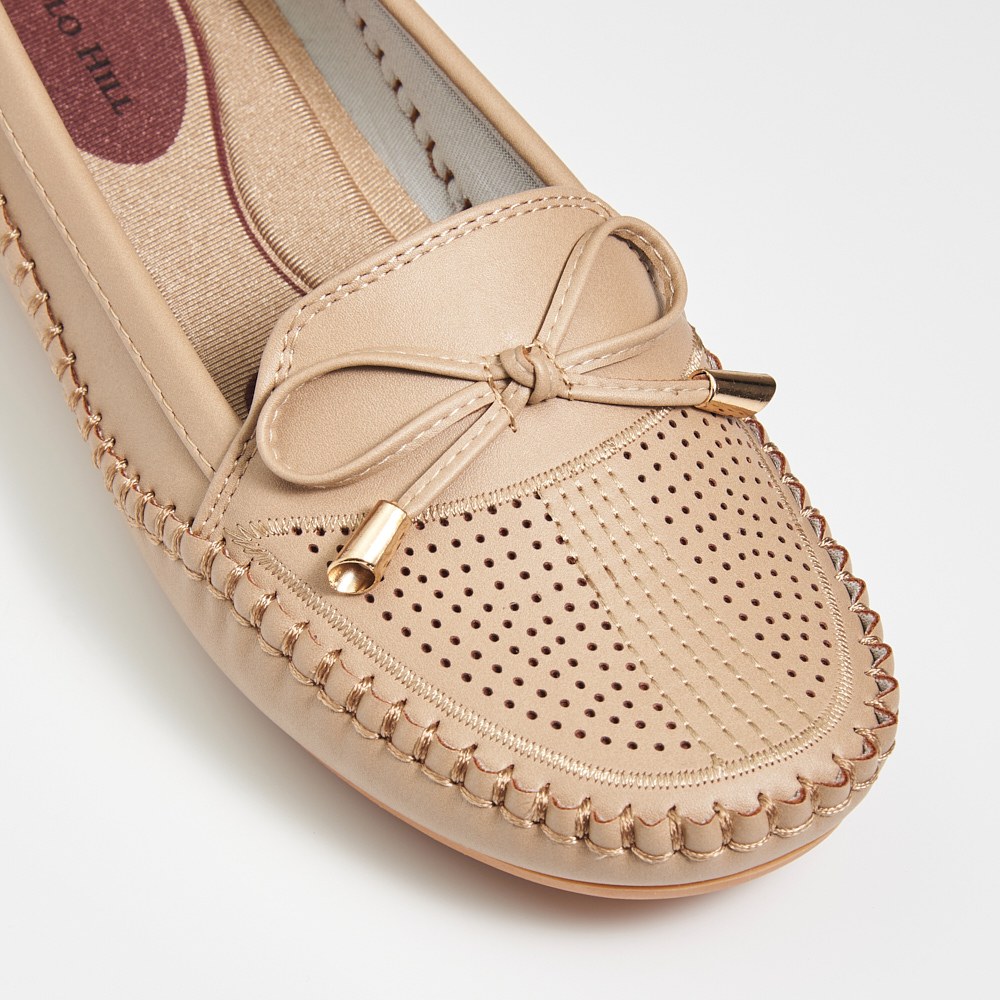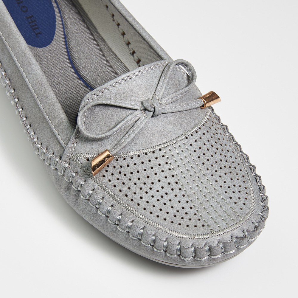POLO HILL Ladies Bow Tie Slip On Loafers Shoes PLSL-LS5106 (Brown/Grey)