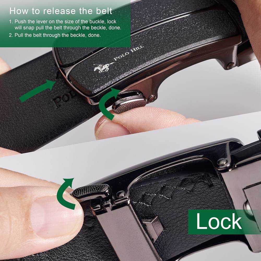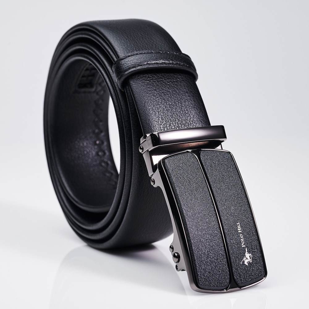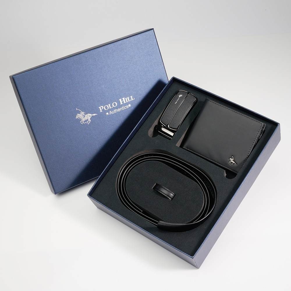 POLO HILL Men Gift Box 2-in-1 Bundle Set Genuine Leather RFID Secured Wallet Automatic Belt PMAS001