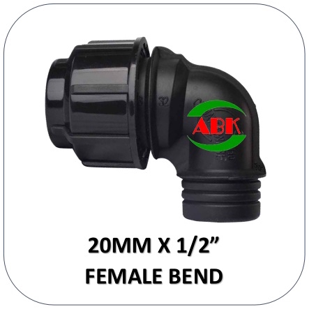 POLY FITTINGS - 20MM X 1/2" HDPE POLY PIPE FEMALE BEND [MADE IN MALAYSIA]