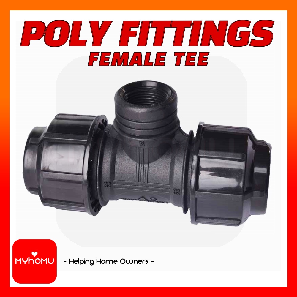 POLY FITTINGS MALE/FEMALE TEE STANDARD HDPE FITTINGS PENYAMBUNG PAIP POLY TEE THREAD DALAM THREAD LUAR HITAM 0131