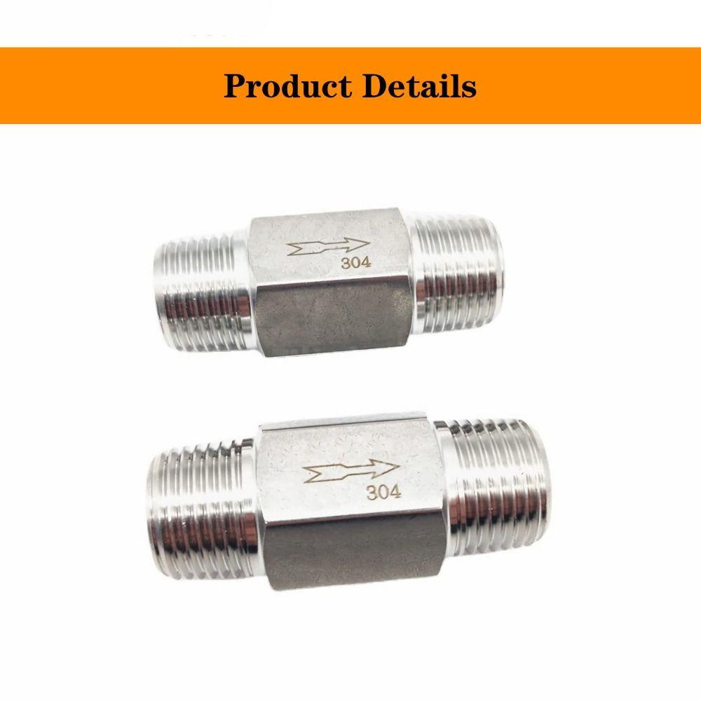 POP One-way Valve, Silver 304 Stainless Steel Check Valve, Durable 1/4 Inch NPT Male to Male Thread Backflow Valve Oil Water Gas