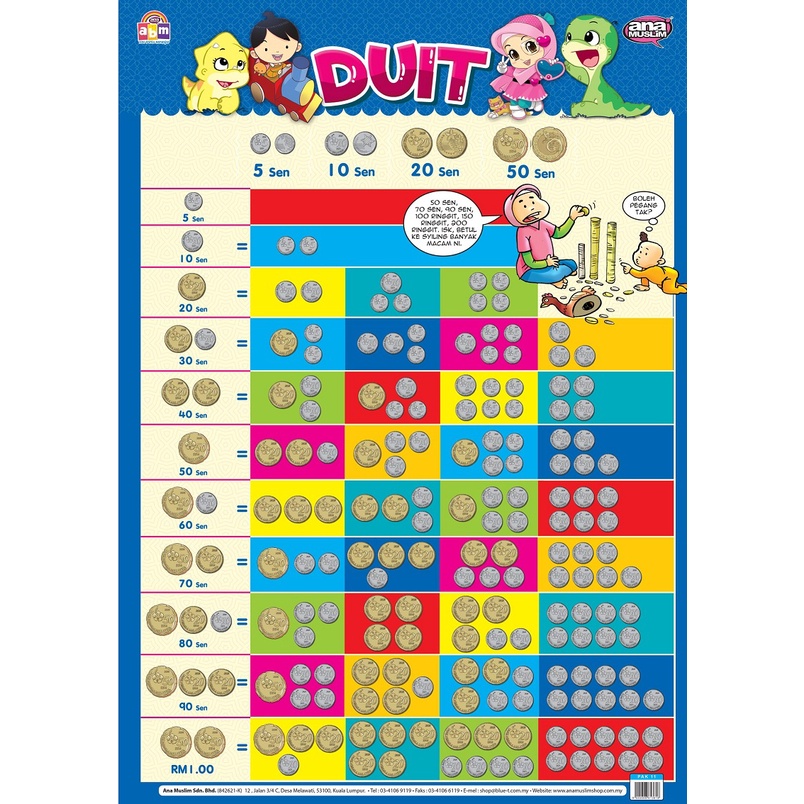 POSTER 123 | SIFIR | JAM | NOMBOR| DUIT | BENTUK & WARNA [POSTER SEKOLAH | KANAK-KANAK] [ANA MUSLIM]