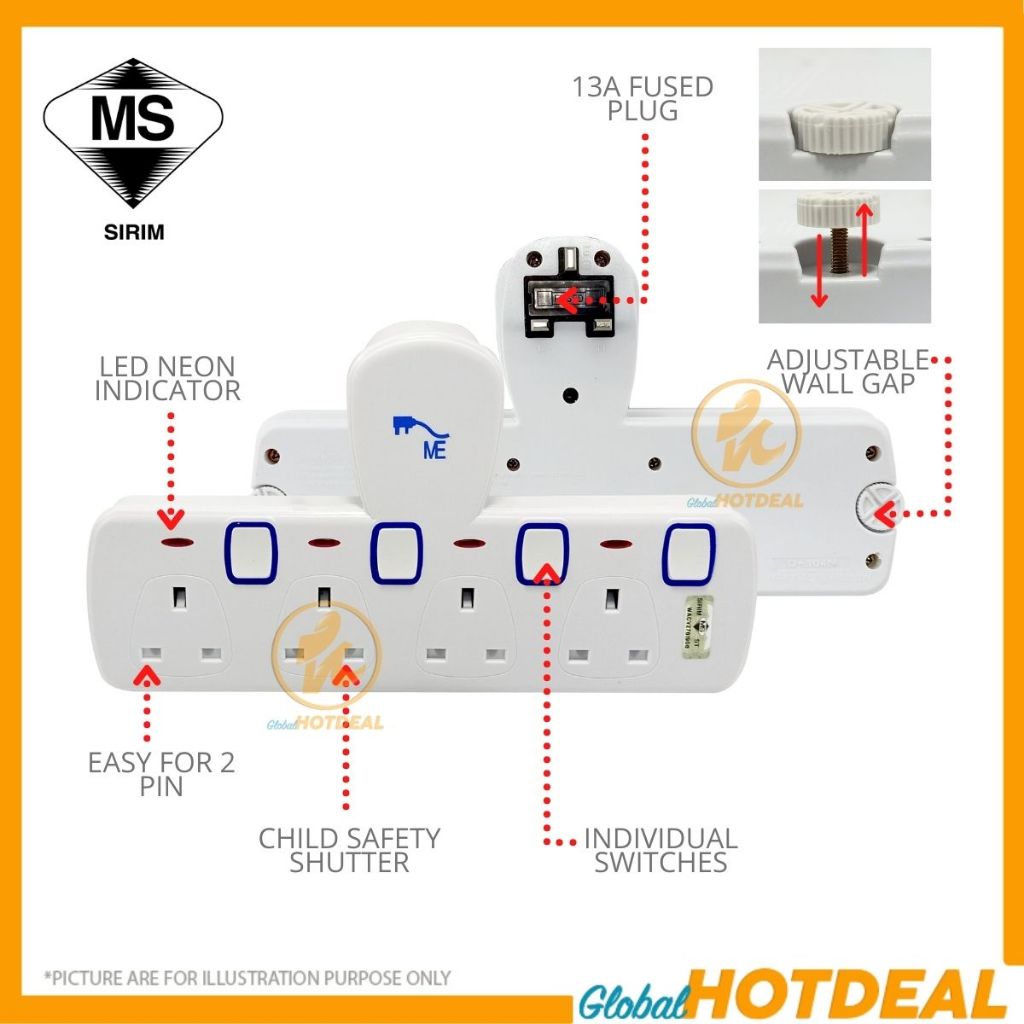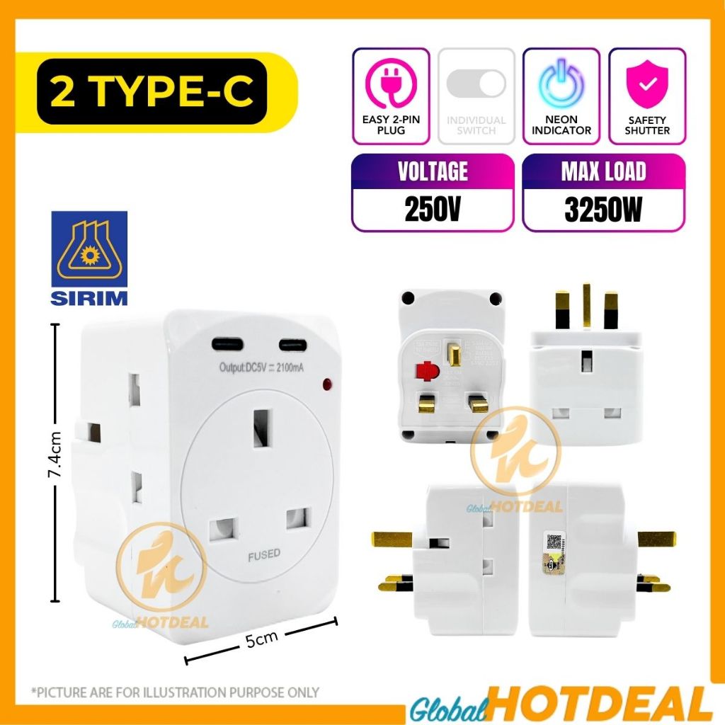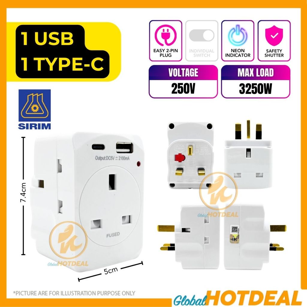 POWER ADAPTOR SOCKET T-Adaport Multi Adaptor Universal Outlet USB Extension Trailing Socket Extension Eletrik Asrama