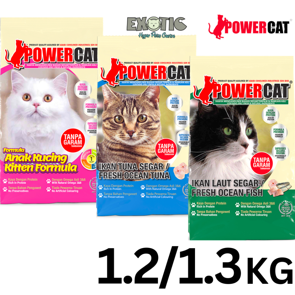 POWER CAT Makanan Kucing Berkualiti Cat Food Kibbles Fresh Ocean Fish/Tuna/Kitten - 1.2KG & 1.3KG