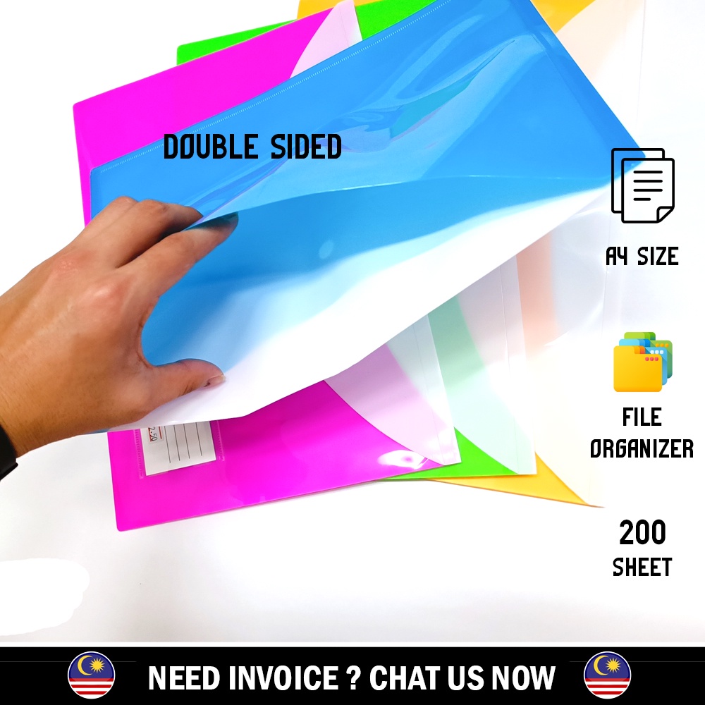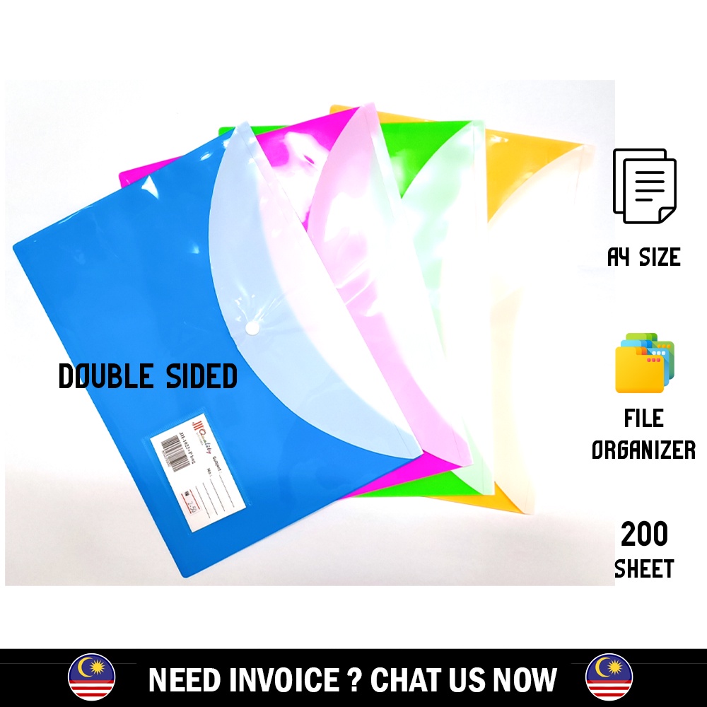 PP Clear Pocket File Holder A4 Size String File / Extra Thick - 5 Colour PP File Button File