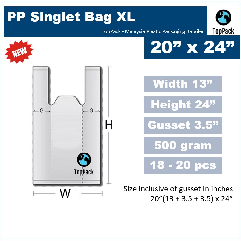 PP XL Singlet Plastic Bag Clear Plastic Beg Plastik Transparent Lutsinar 500g Food Bungkusan Makanan Packaging Toppack
