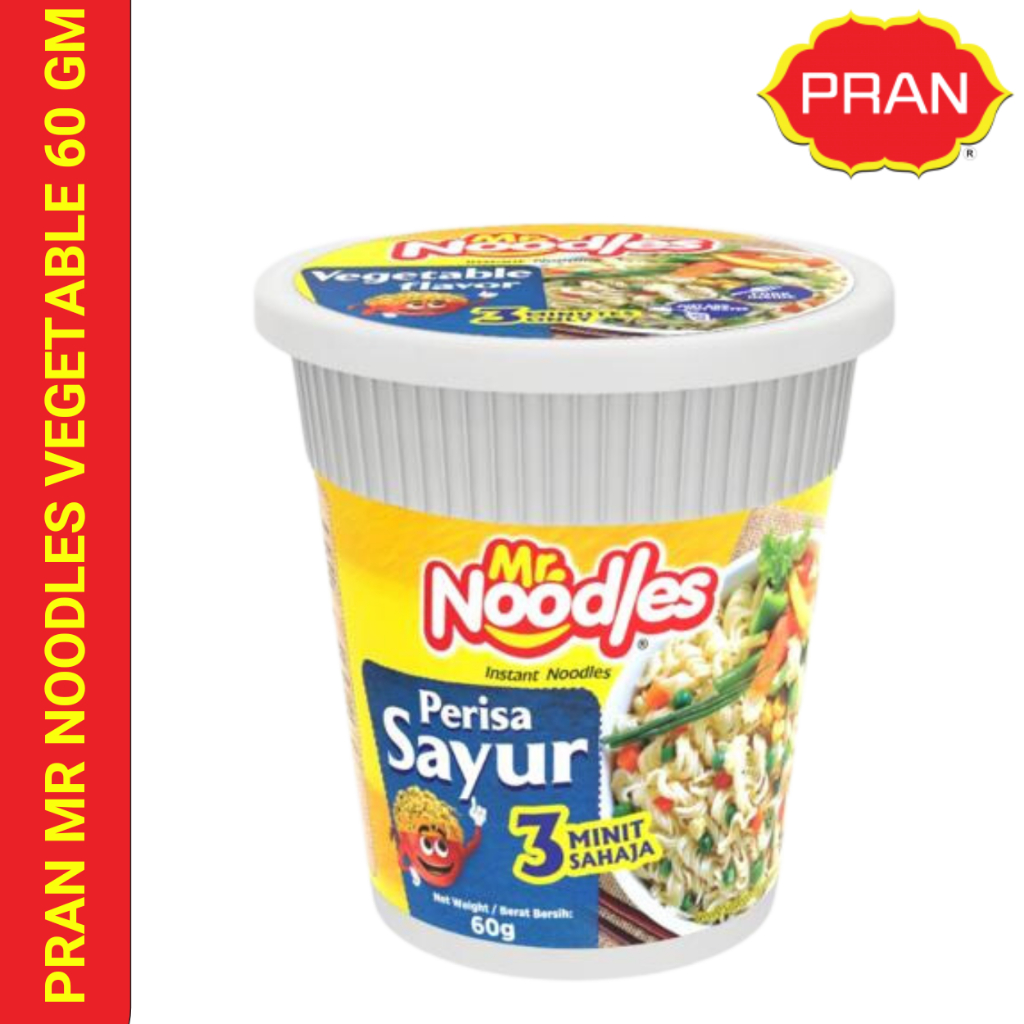 PRAN Mr. Noodles Cup - Chicken/Vegetable/Kari/Daging/Tomyam/ Asam Laska (60g).