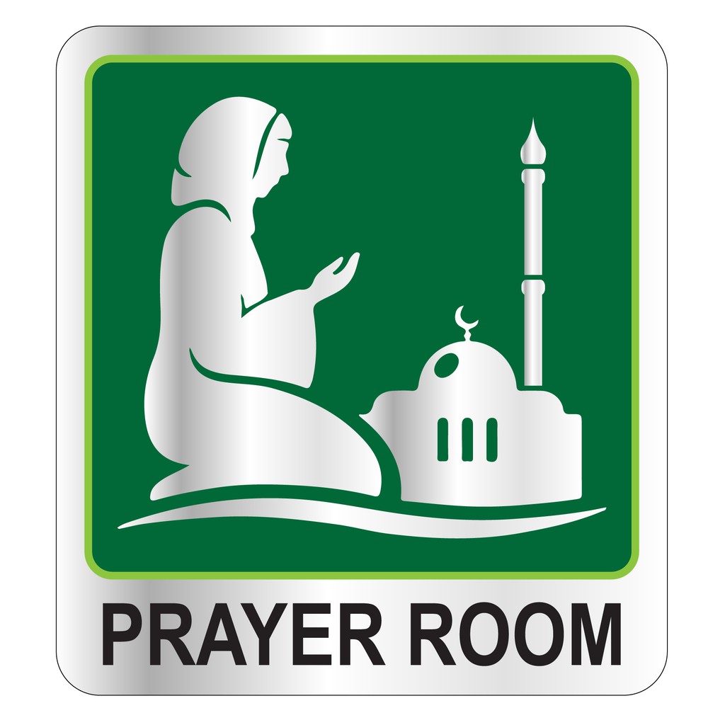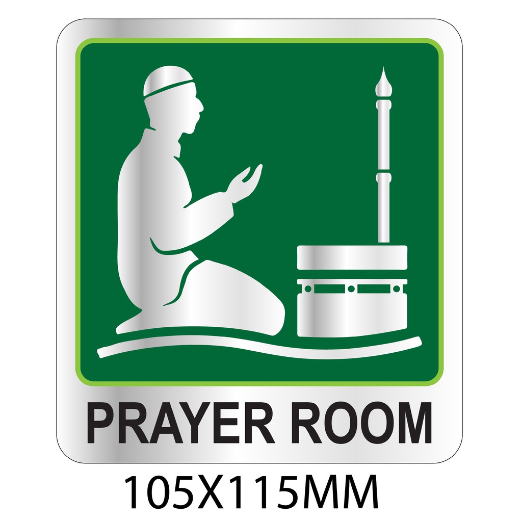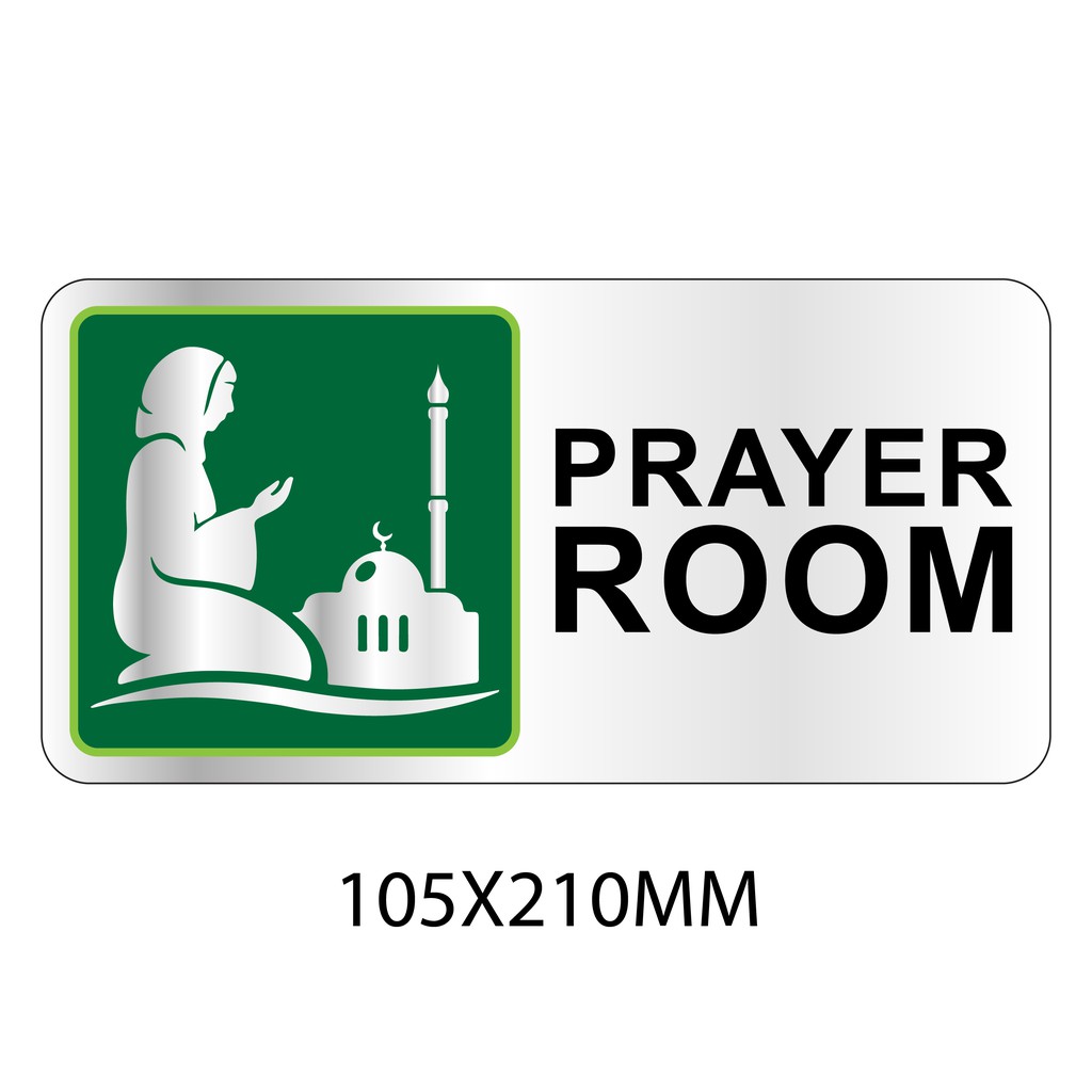 PRAYER ROOM SILVER BRUSHED SIGN STICKER 105X115MM, 140x153MM. WE ACCEPT CUSTOM-MAKE ORDER