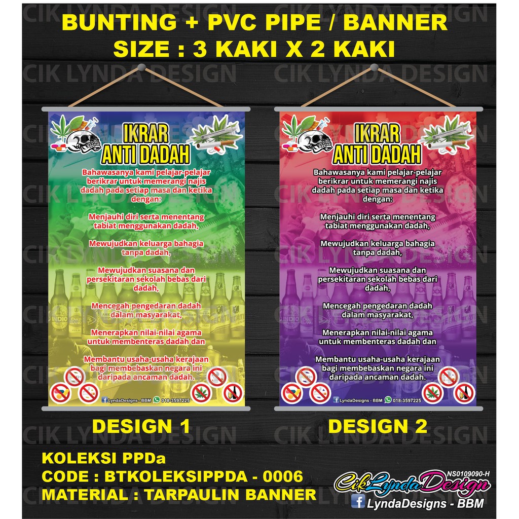 PRE-ORDER - BANNER ATAU BUNTING + PVC PIPE - KOLEKSI PPDA (DADAH) SEKOLAH