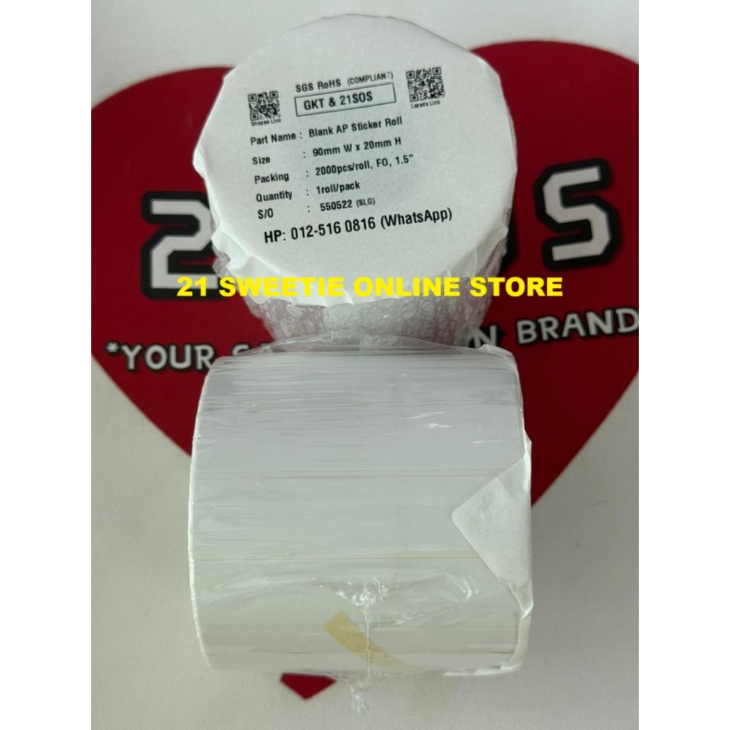 PREMIUM 90x20 Blank Barcode Label Art Paper 1UP AP Sticker Avery Strong Adhesive AP ISO Quality Assurance [2000pcs/roll]