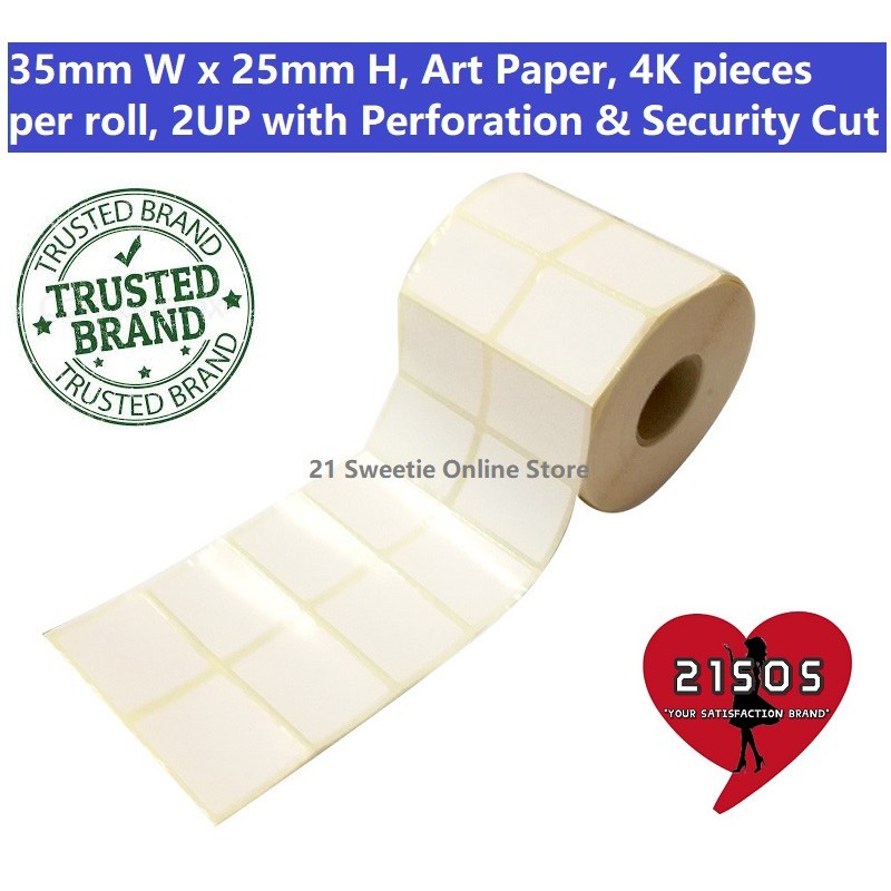 PREMIUM Blank Barcode Label 35x25 mm 2UP Sticker Avery Art Paper 35x25 Strong Adhesive ISO AP Quality Label [4kpcs/roll]