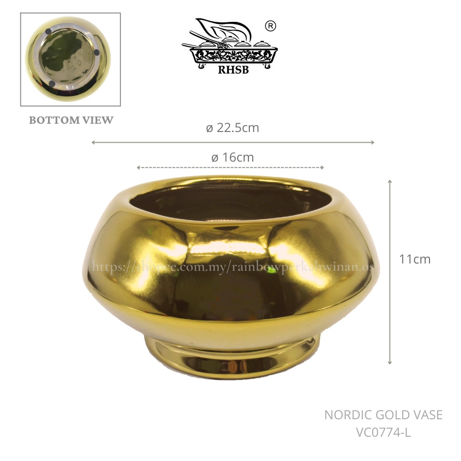 PREMIUM GOLD VASE / CERAMIC VASE / PASU EMAS / METALLIC VASE / PASU BUNGA / FLOWER POT / PASU CERAMIK / VC0771-0864