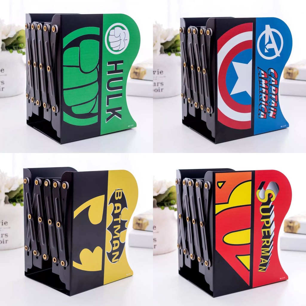 PREMIUM QUALITY Creative AVENGERS Marvel DC Superman Retractable Extendable Metal Book Stand Book Shelf Holder Storage