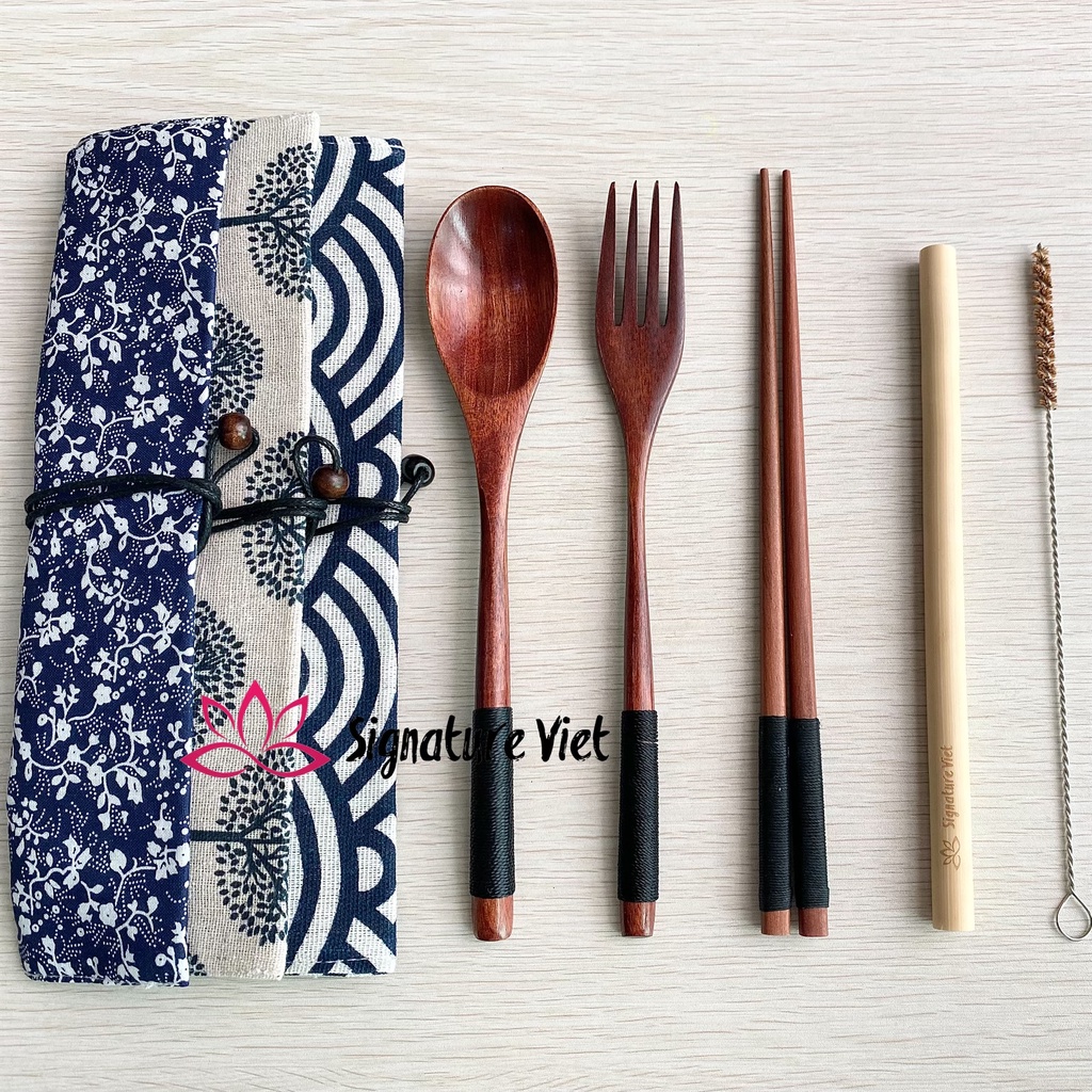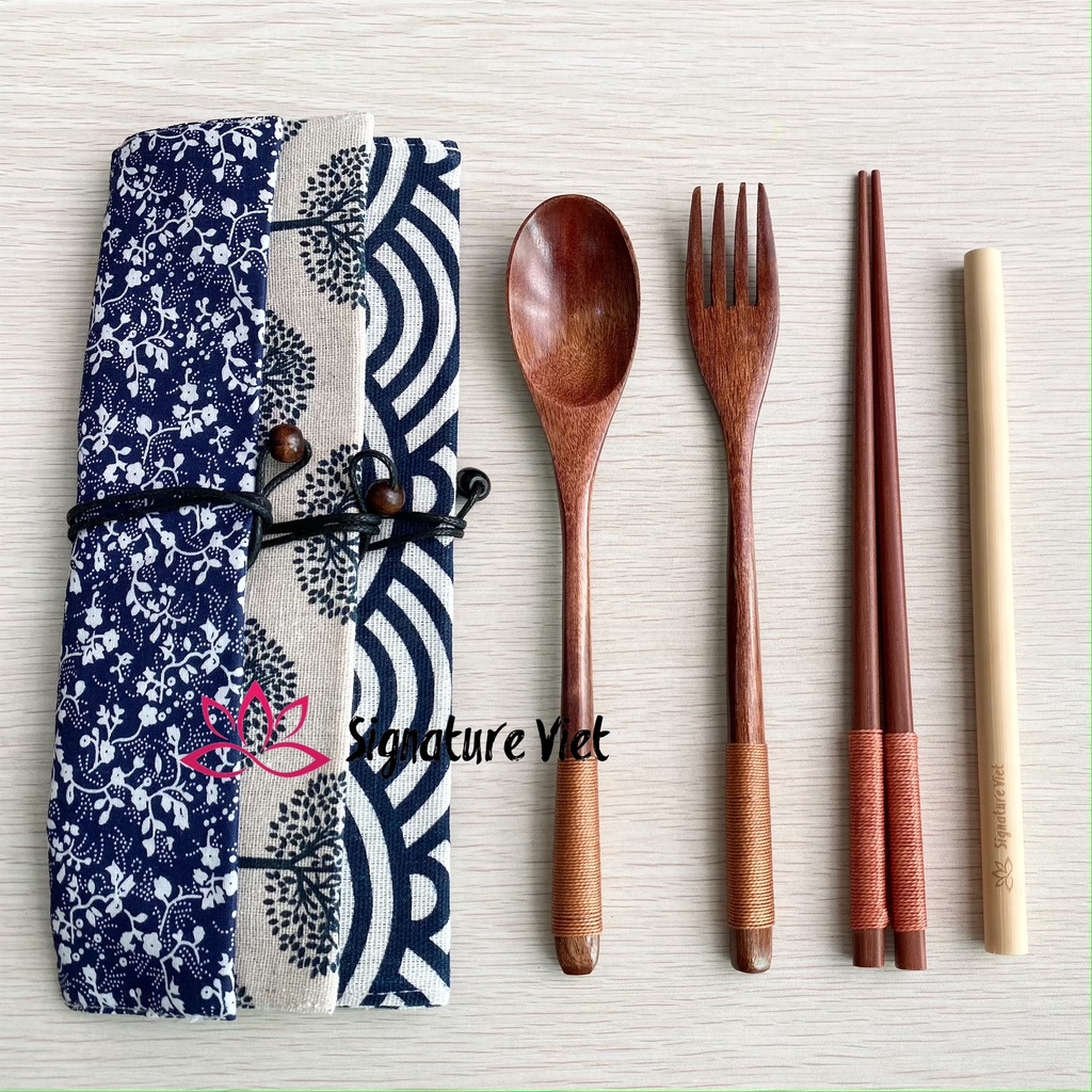 PREMIUM Wooden Cutlery Set With Cotton Pouch