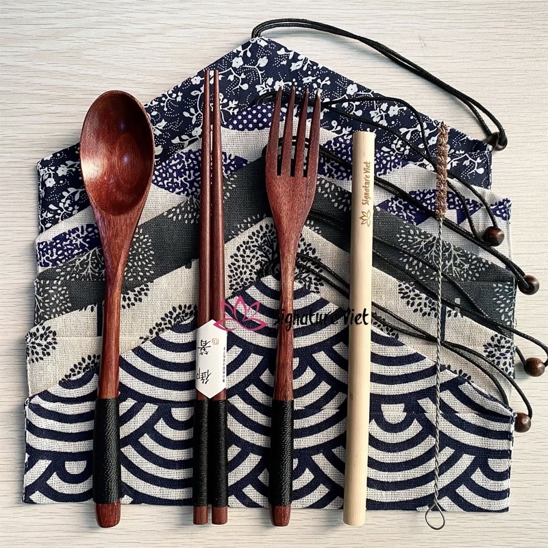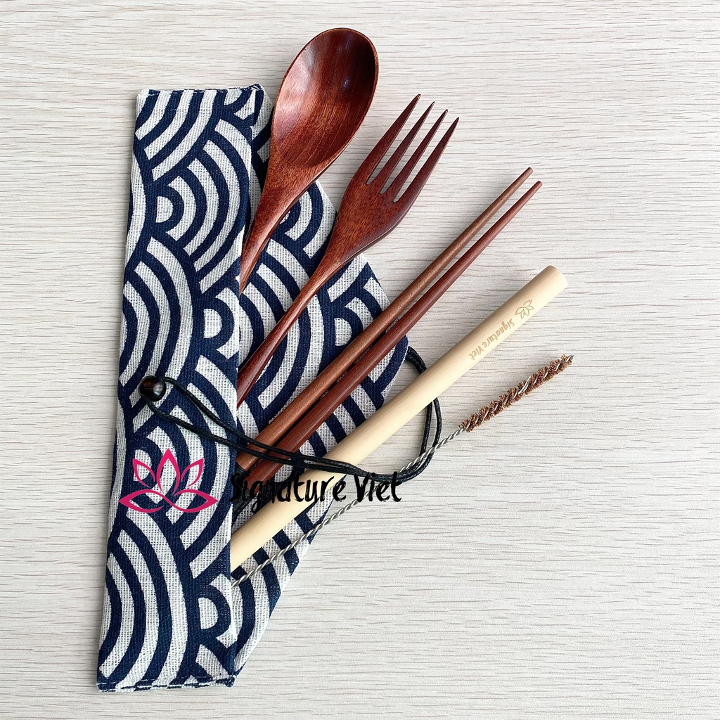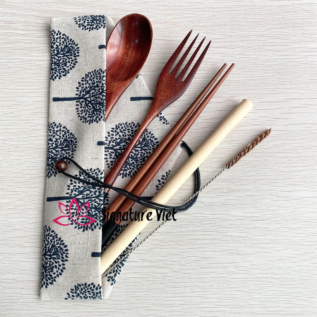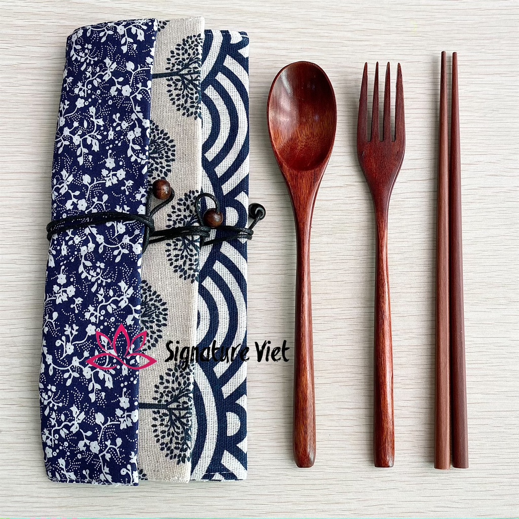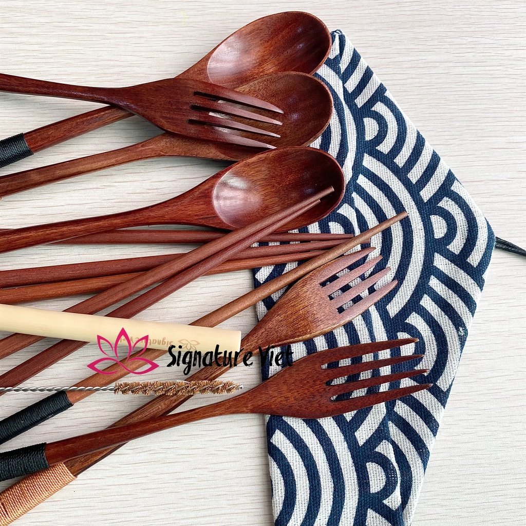 PREMIUM Wooden Cutlery Set With Cotton Pouch