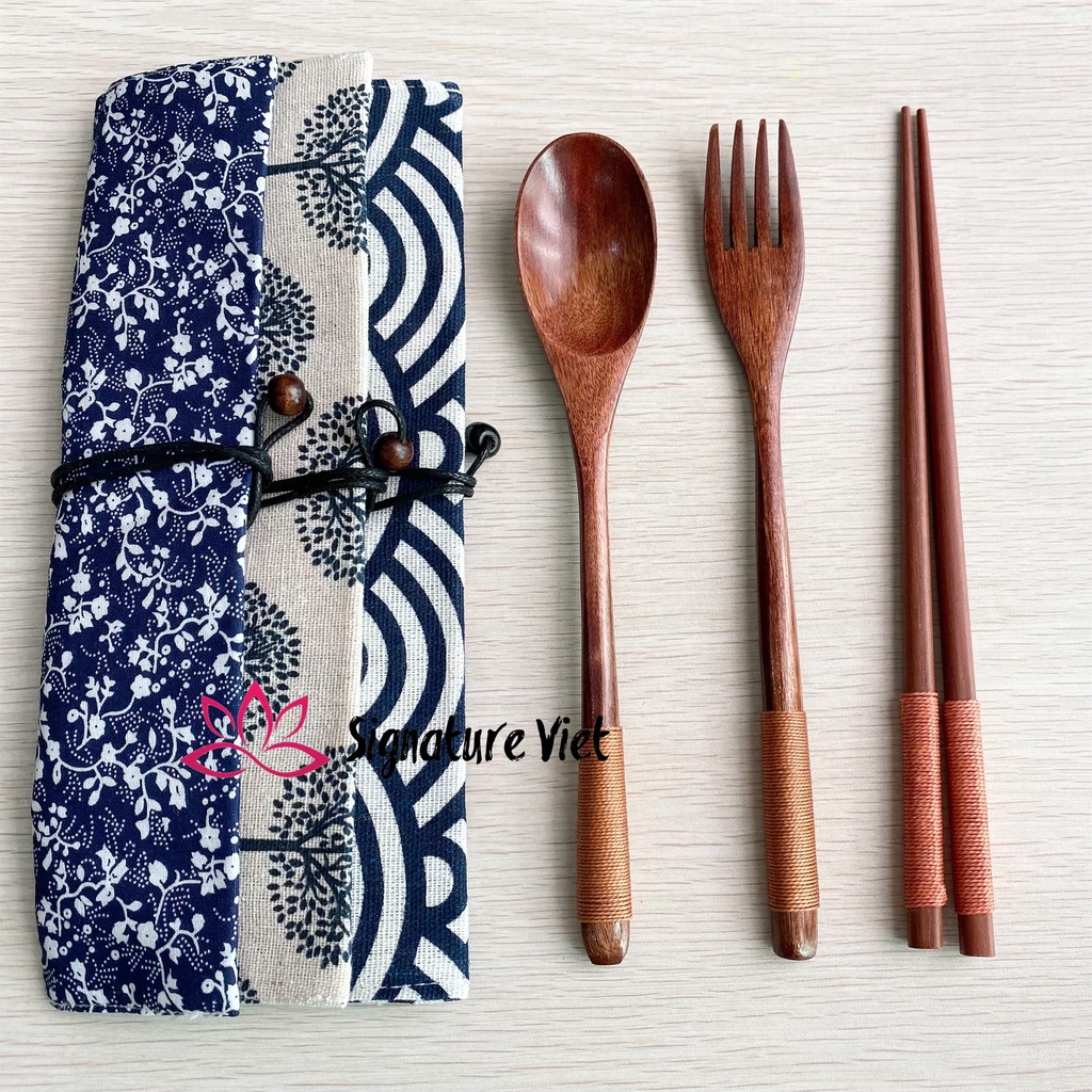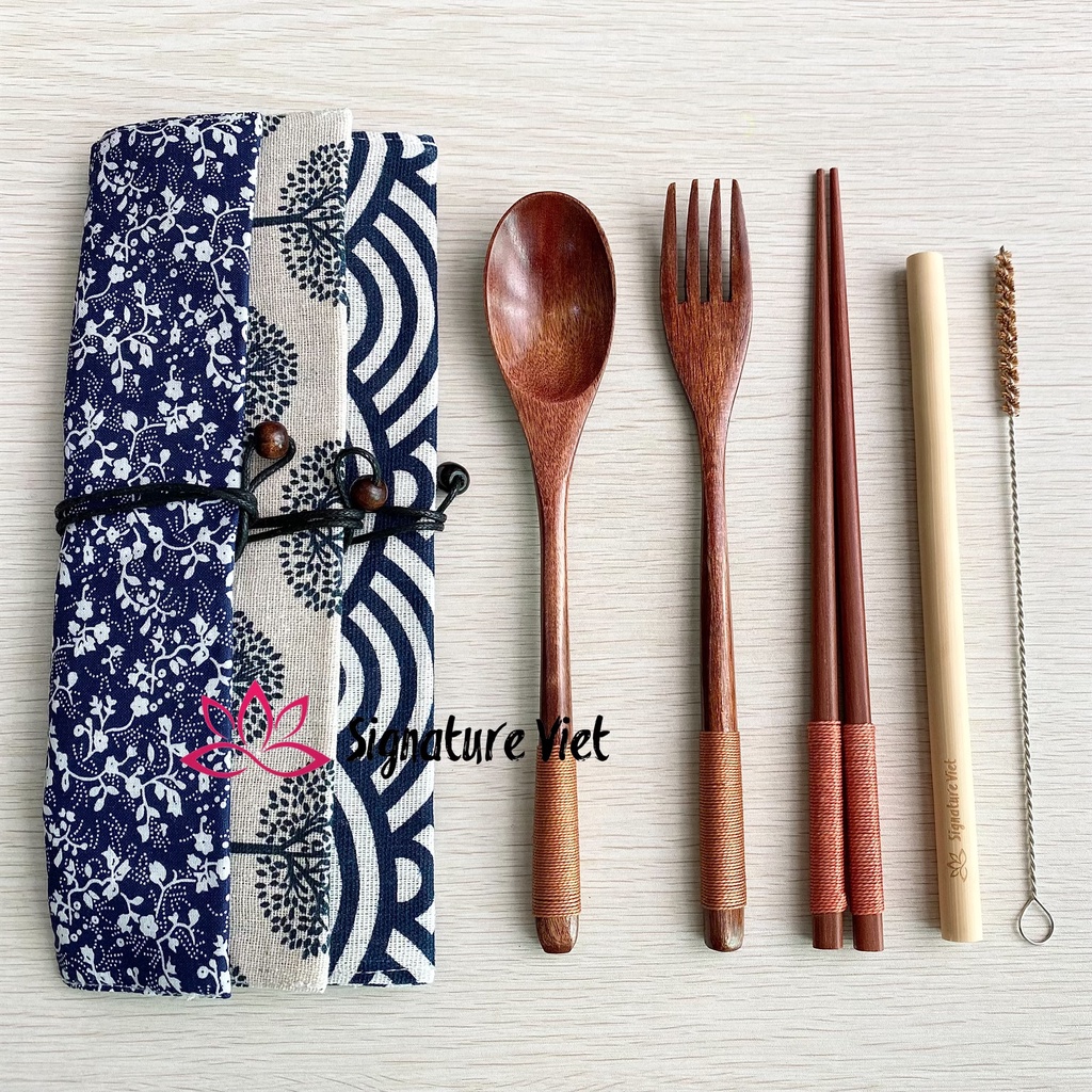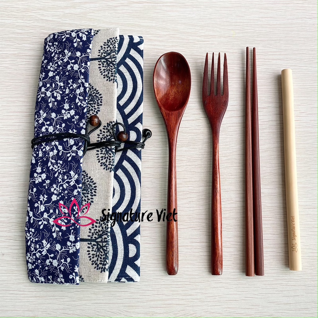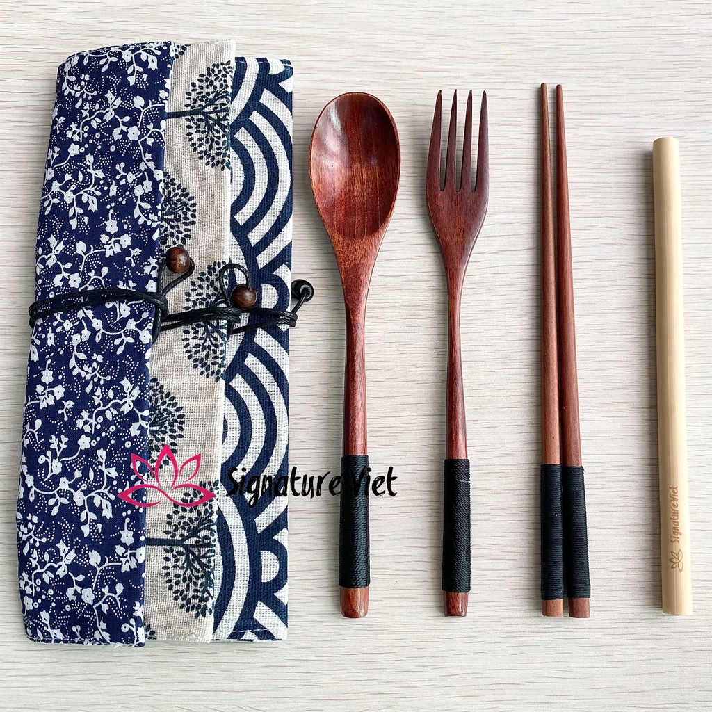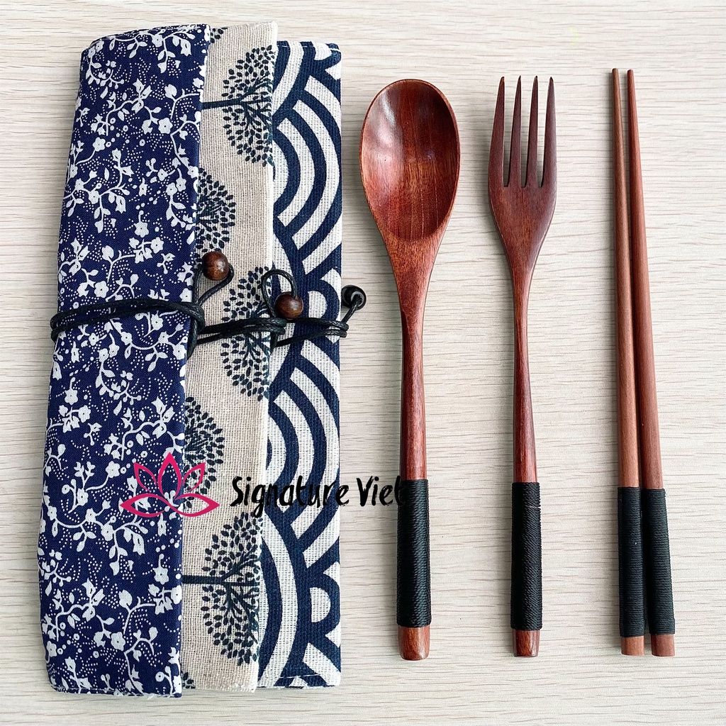 PREMIUM Wooden Cutlery Set With Cotton Pouch