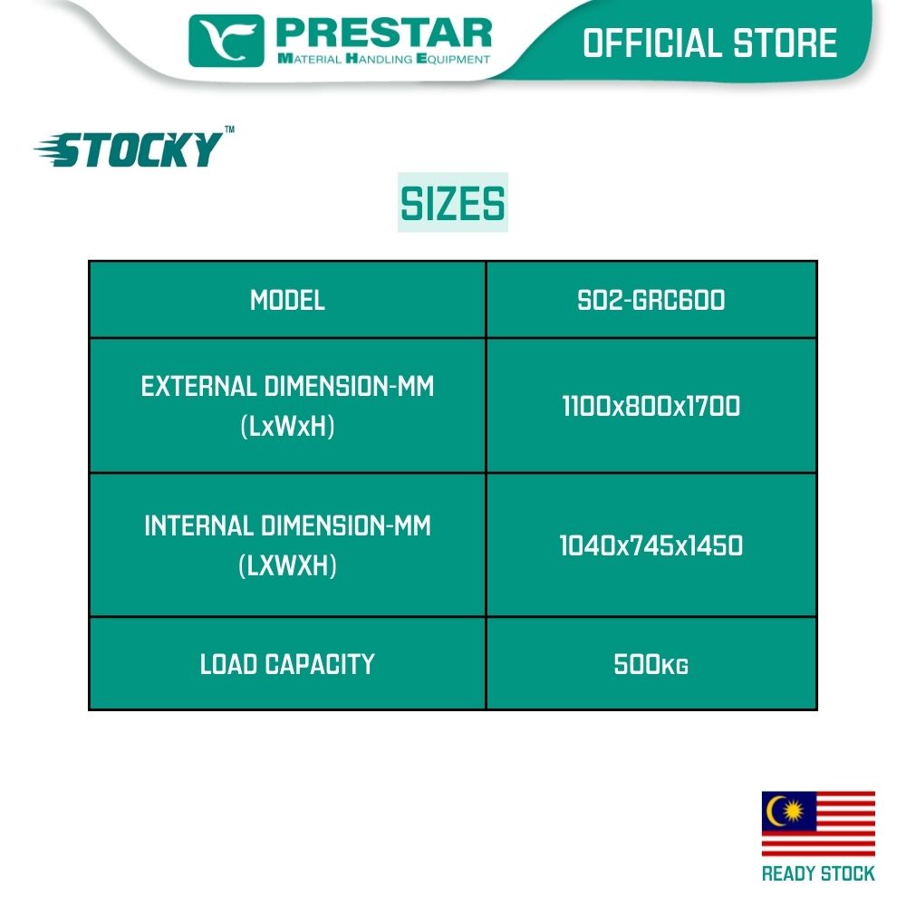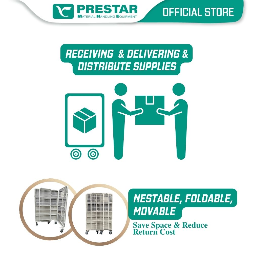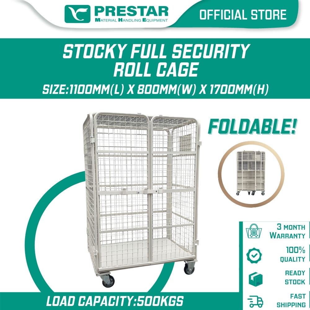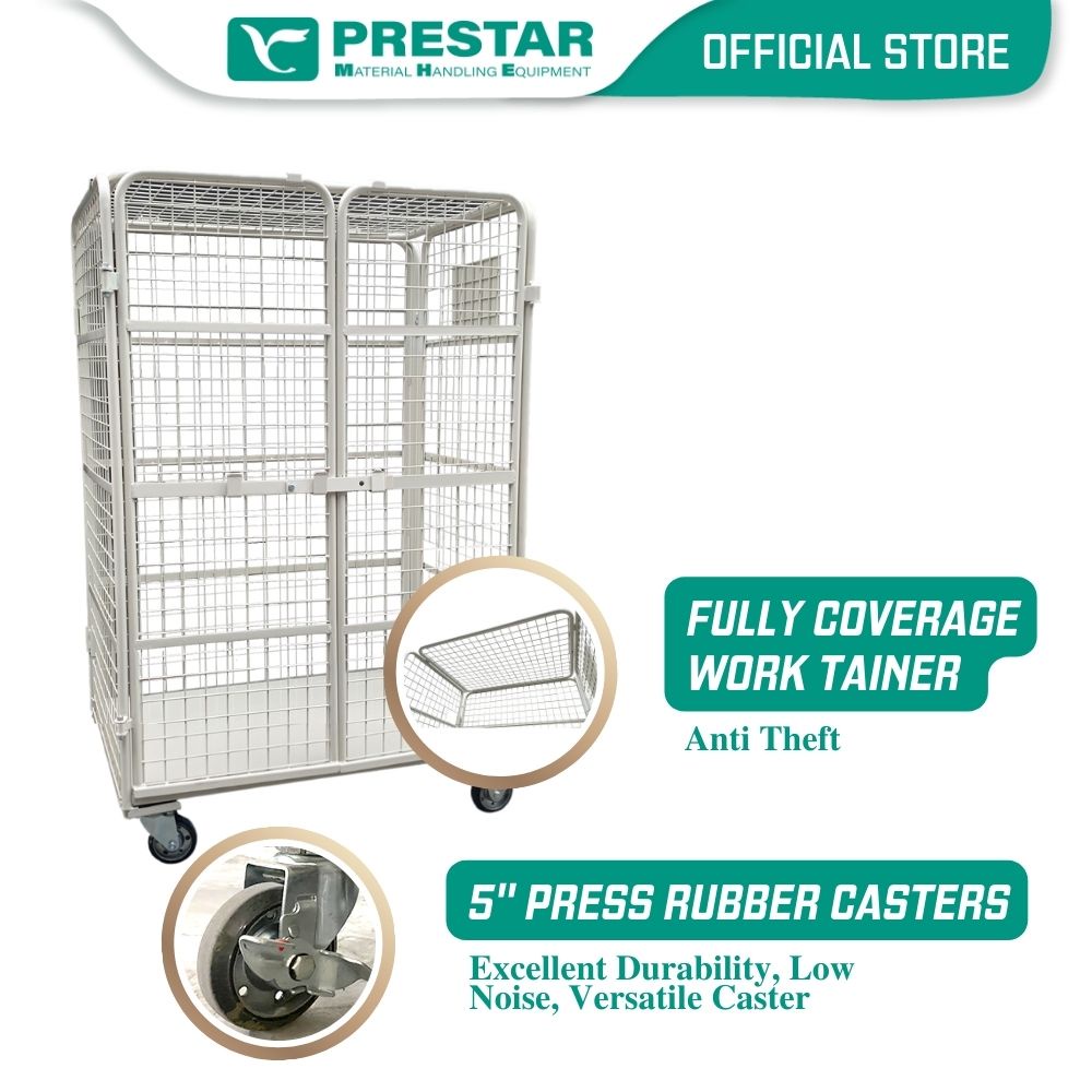 PRESTAR MHE Stocky Grind Roll Container Full Security 4 Sided Wire Panel up to 500kg 800(D) x 1100(W) x 1700(H) mm