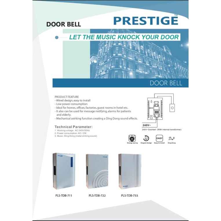 PRESTIGE MECHANICAL DING DONG DOOR BELL CHIME /DOOR BELL DING DONG WITH INTERNAL TRANSFORMER