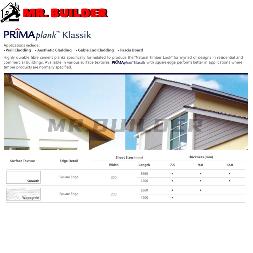 PRIMA Klassik Plank Smooth or Woodgrain 7.5MM x 230MM x 3660MM Papan Manis Fascia Board Wall Cladding