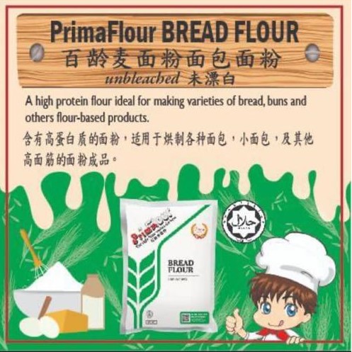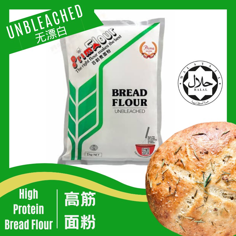 PRIMA Unbleached High Protein Bread Flour Tepung Roti 百龄麦无漂白高筋面包粉 1KG