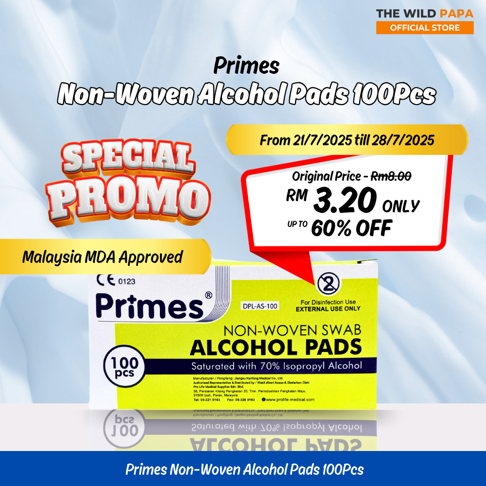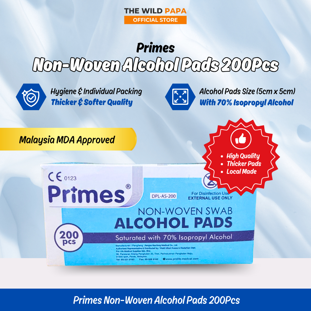 PRIMES Alcohol Pads 100Pcs/ 200Pcs Non-Woven Swab With 70% Isopropyl Alcohol MDA Approved