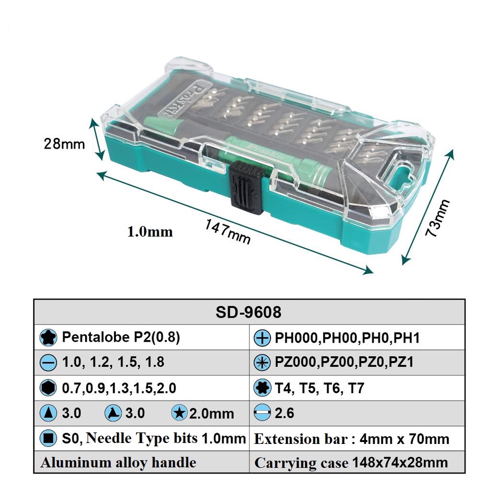 Pro'sKit SD-9608 30pcs Aluminum Handle Precision Screwdriver Set