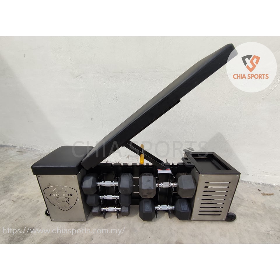 PRO-BOX HIIT Bench + Dumbbell Set All In One Fit Bench Dumbbell Rack Multifunctional Stool Adjustable Workbench Storage