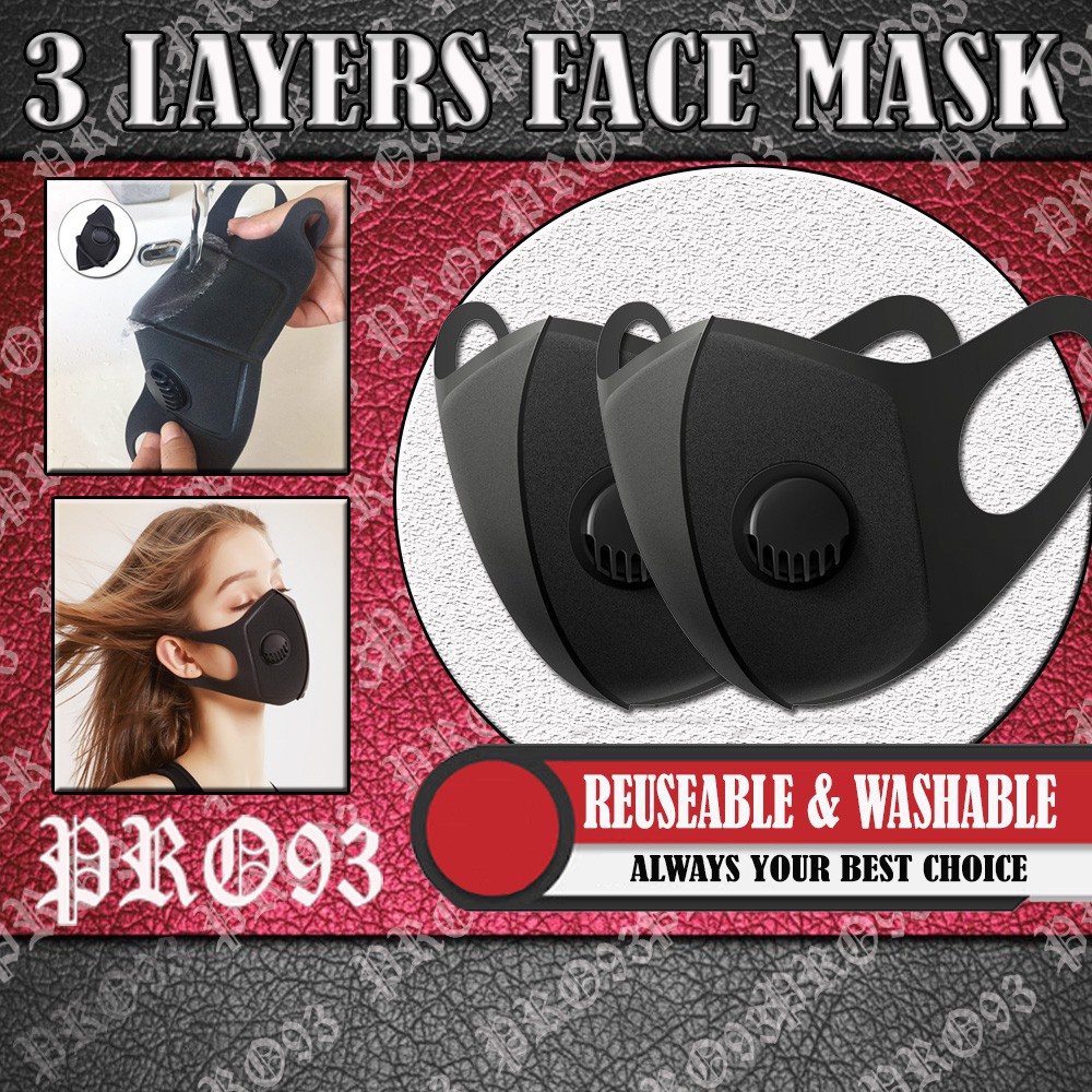 PRO93 3 Layers PM2.5 Face Mask Washable And Reusable Mouth Cover Dustproof Safety Mask With Breath Valve 3197