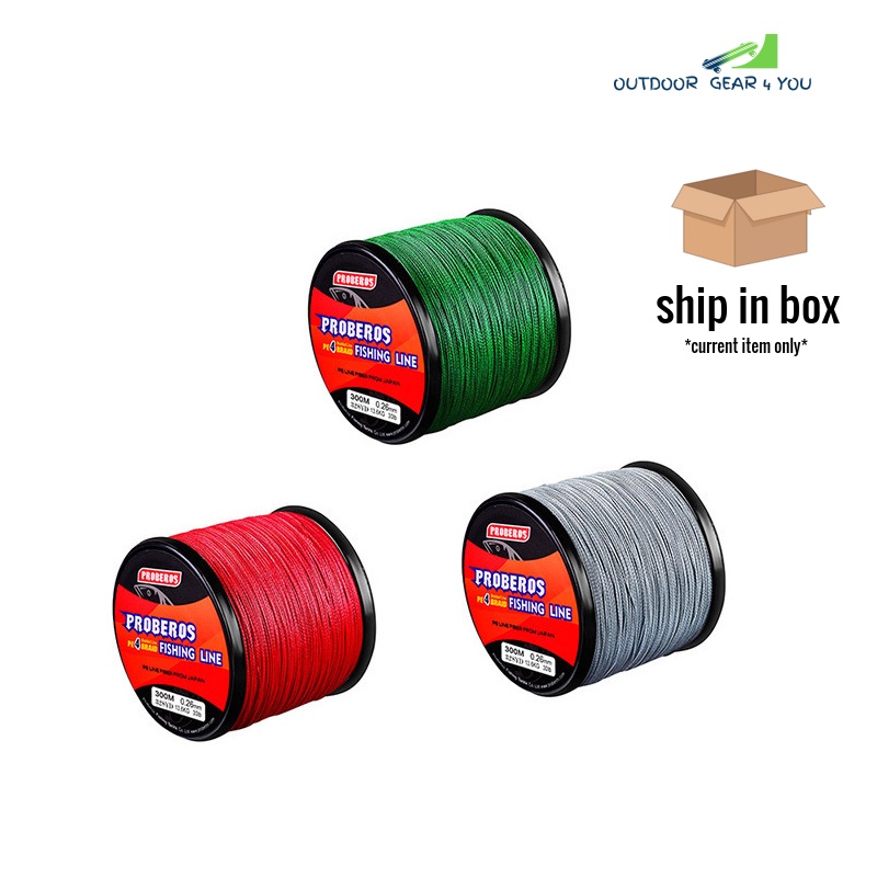 PROBEROS Fishing Line 300m 4 Strands PE Braided Tali Benang Pancing Fishing 4X Braided (Gray, Green , Red )
