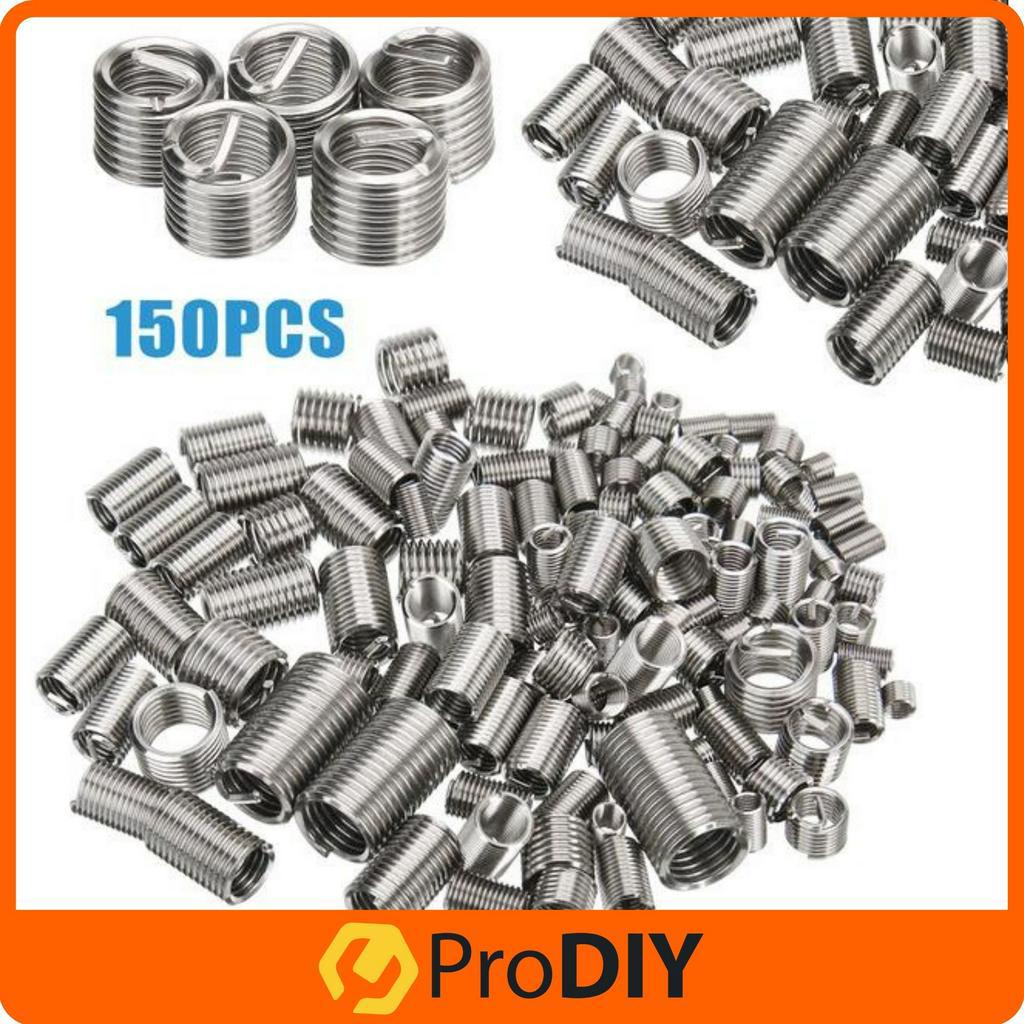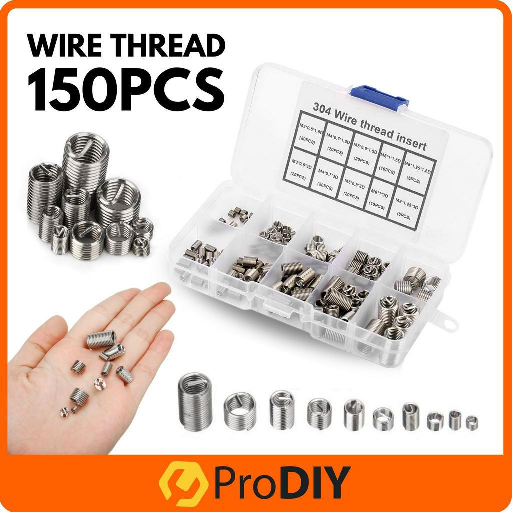 PRODIY 150PCS Wire Thread Insert Thread Repair Kit Threaded Insert Helicoil Set Stainless Steel Helicoil M8 M6 M5 M4 M3